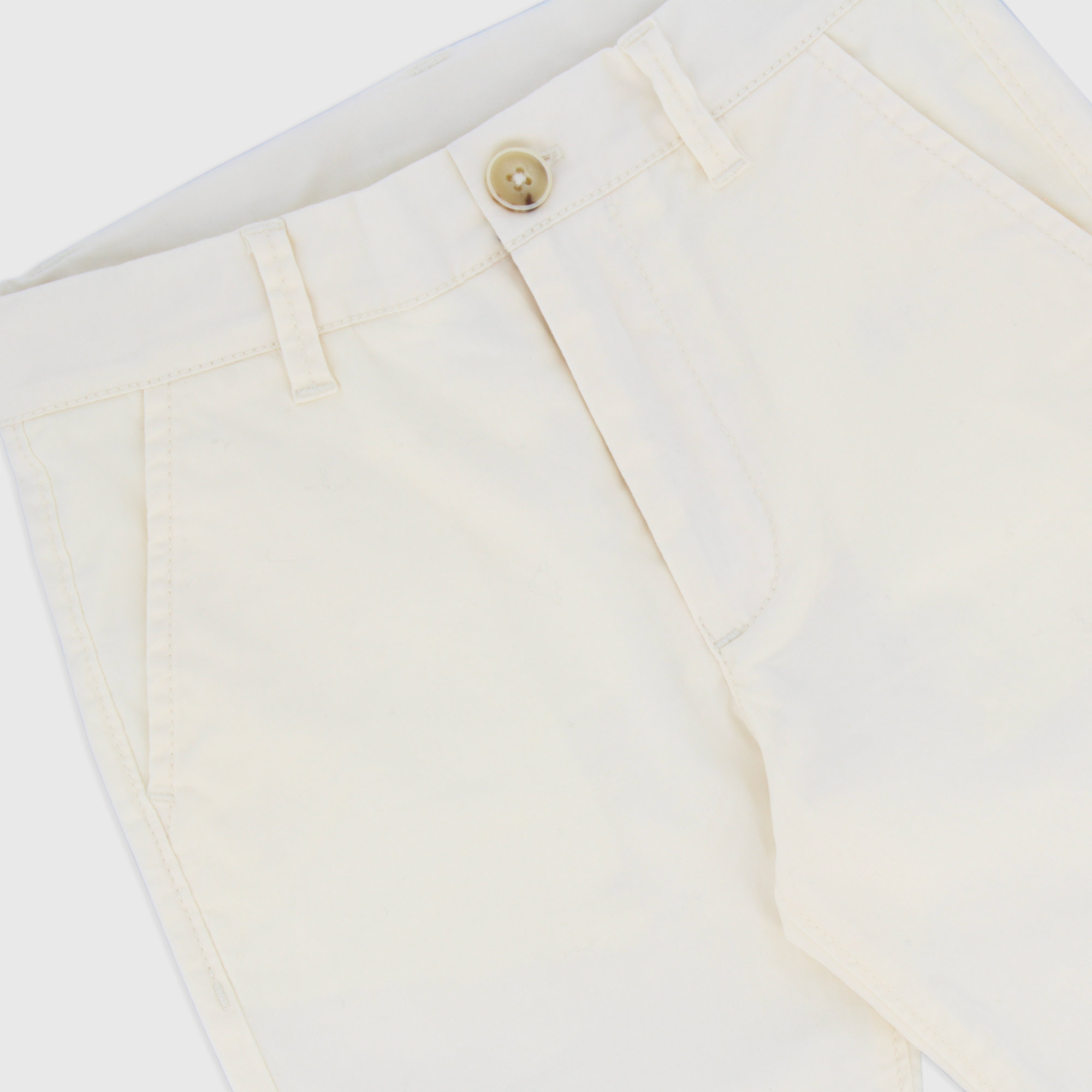 Pantalon en gabardine élastique avec taille réglable à l’intérieur. Fermeture avec bouton. Poches françaises sur le devant et en lisière à l’arrière.