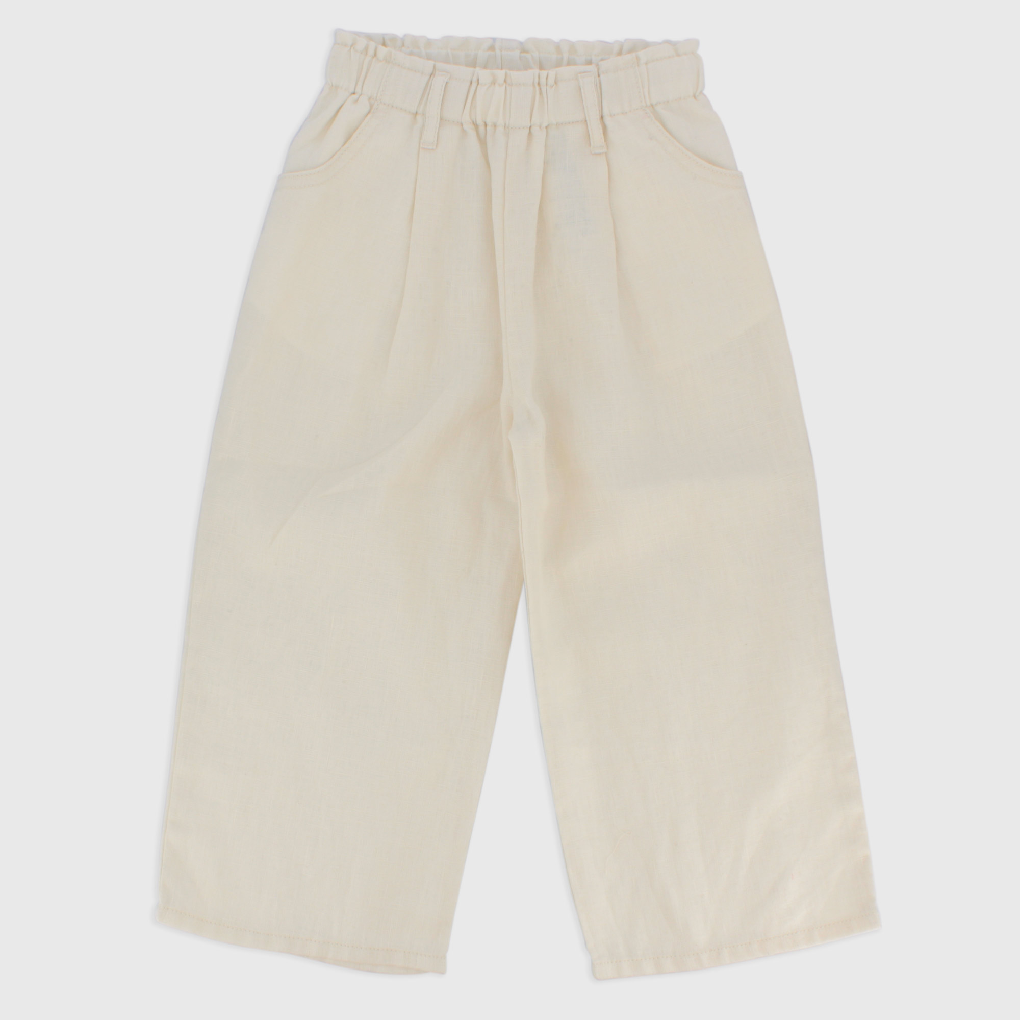Pantalon culotte en jeans légers à taille élastique. Boucles sur la taille.