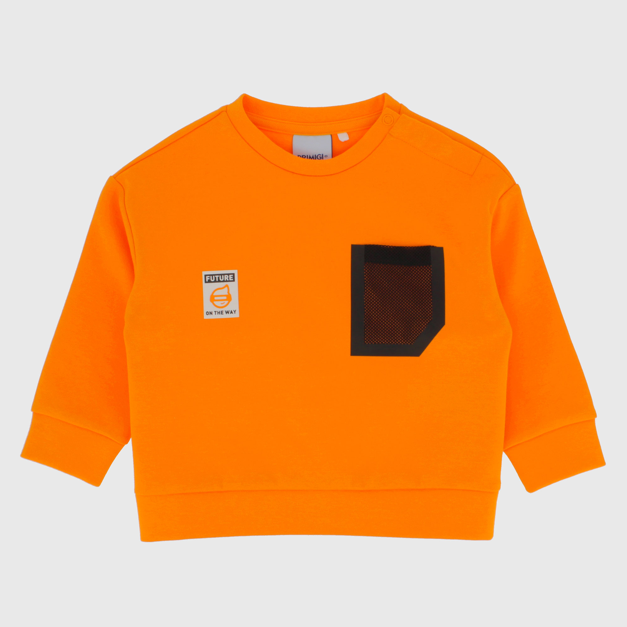 Sweat-shirt à col rond, manches longues. Fermeture avec bouton pression sur l’épaule. Poche en micro-maille. Impression caoutchoutée sur le recto et patch luisant à l’arrière.