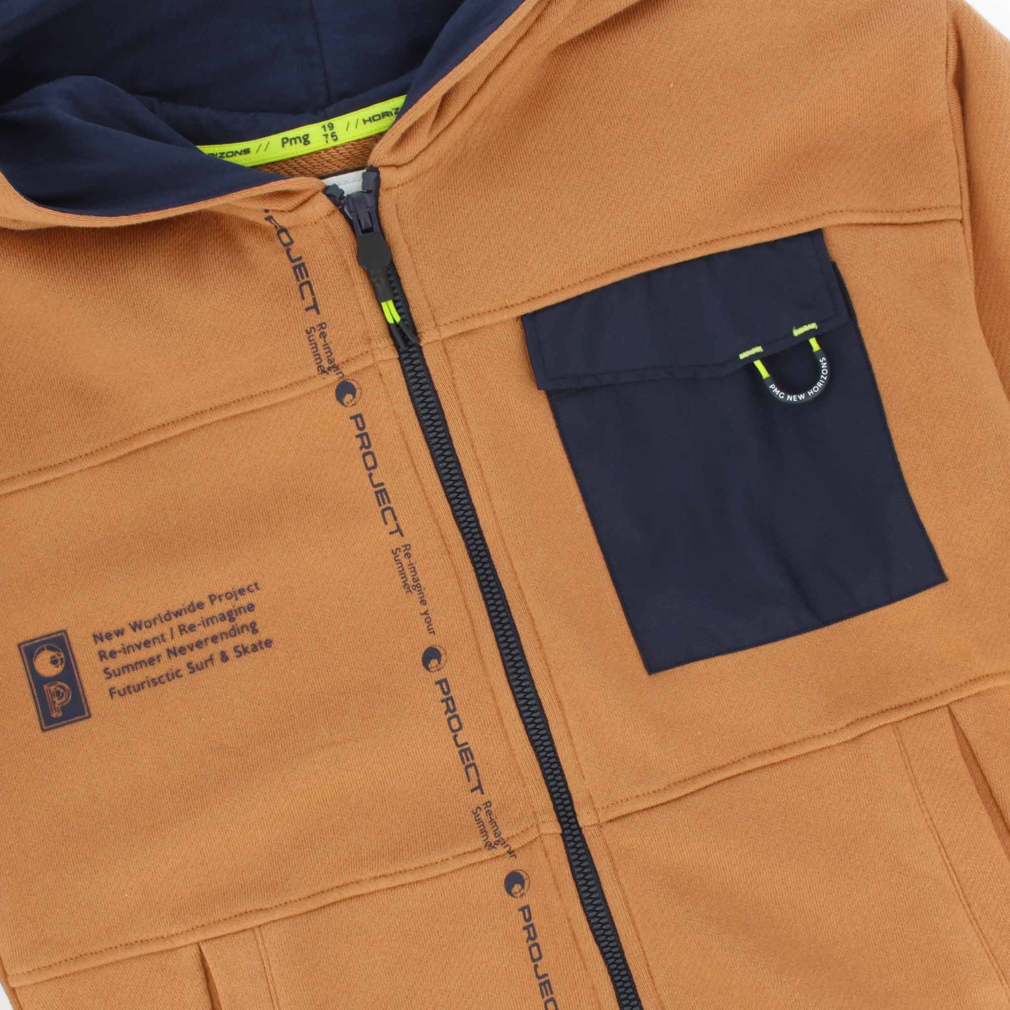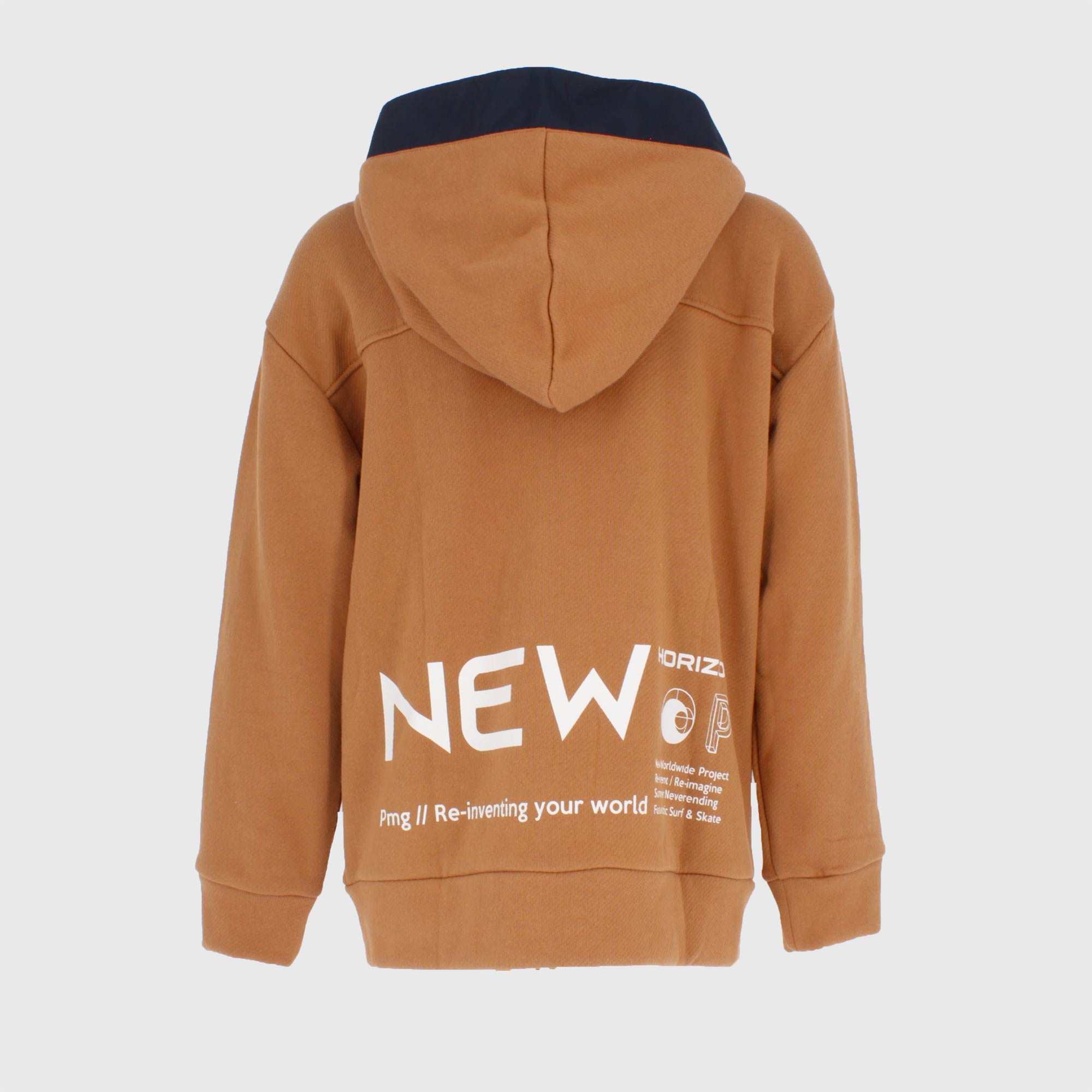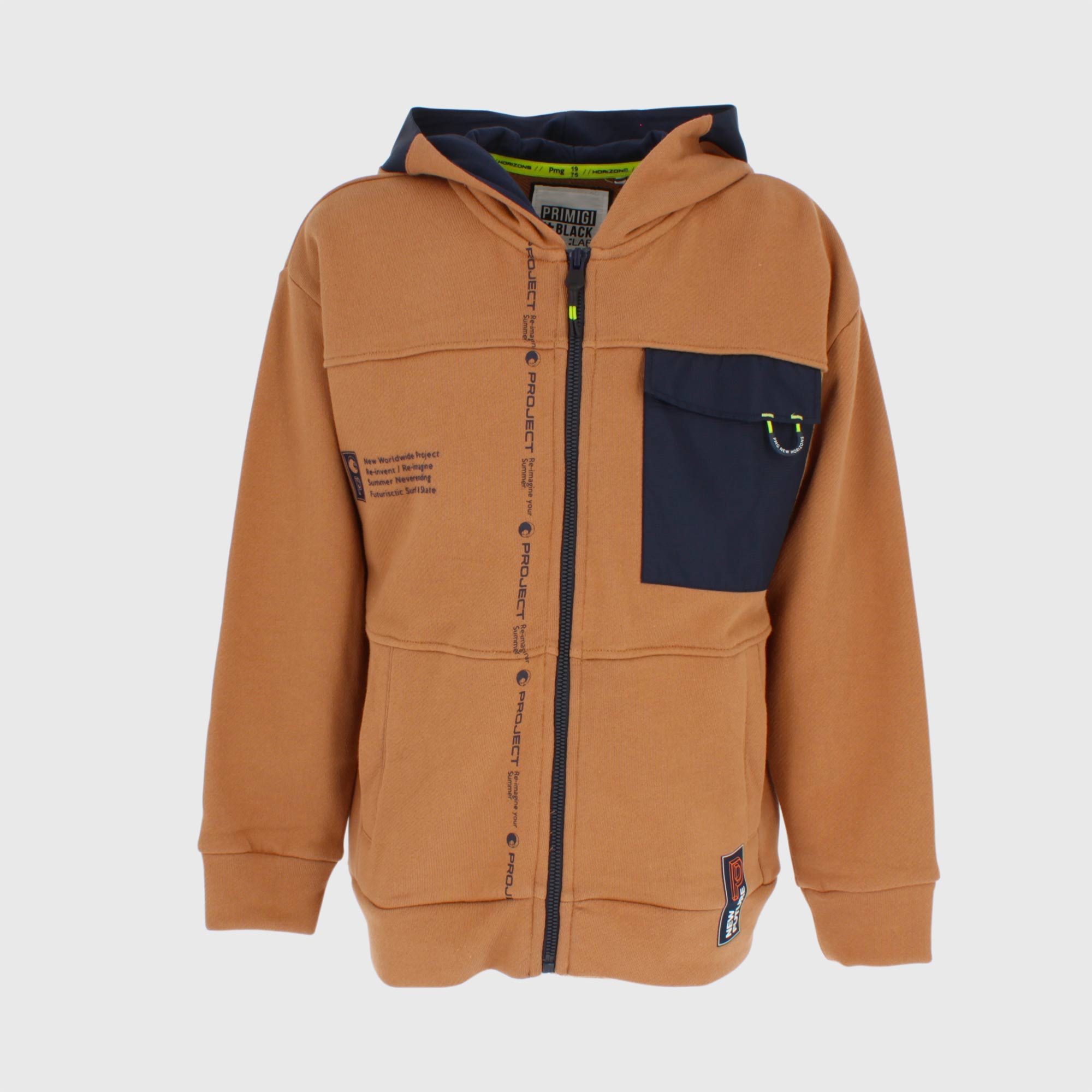 Sweat-shirt à capuche avec doublure contrastante, manches longues. Fermeture à glissière avant contrastante. Poches lisière et poche patch en nylon, patch brodé sur le devant. Impressions caoutchoutées thermoscellées.