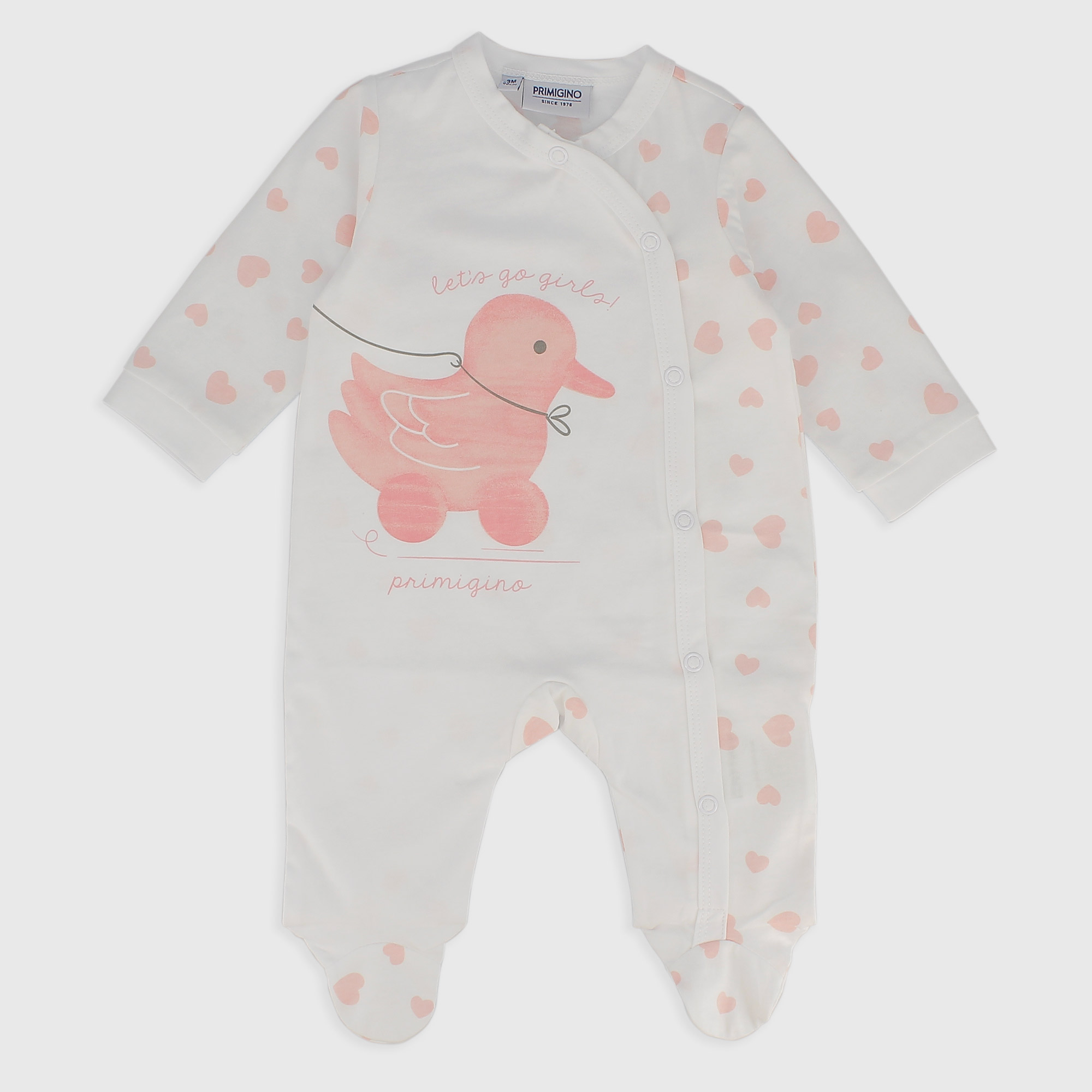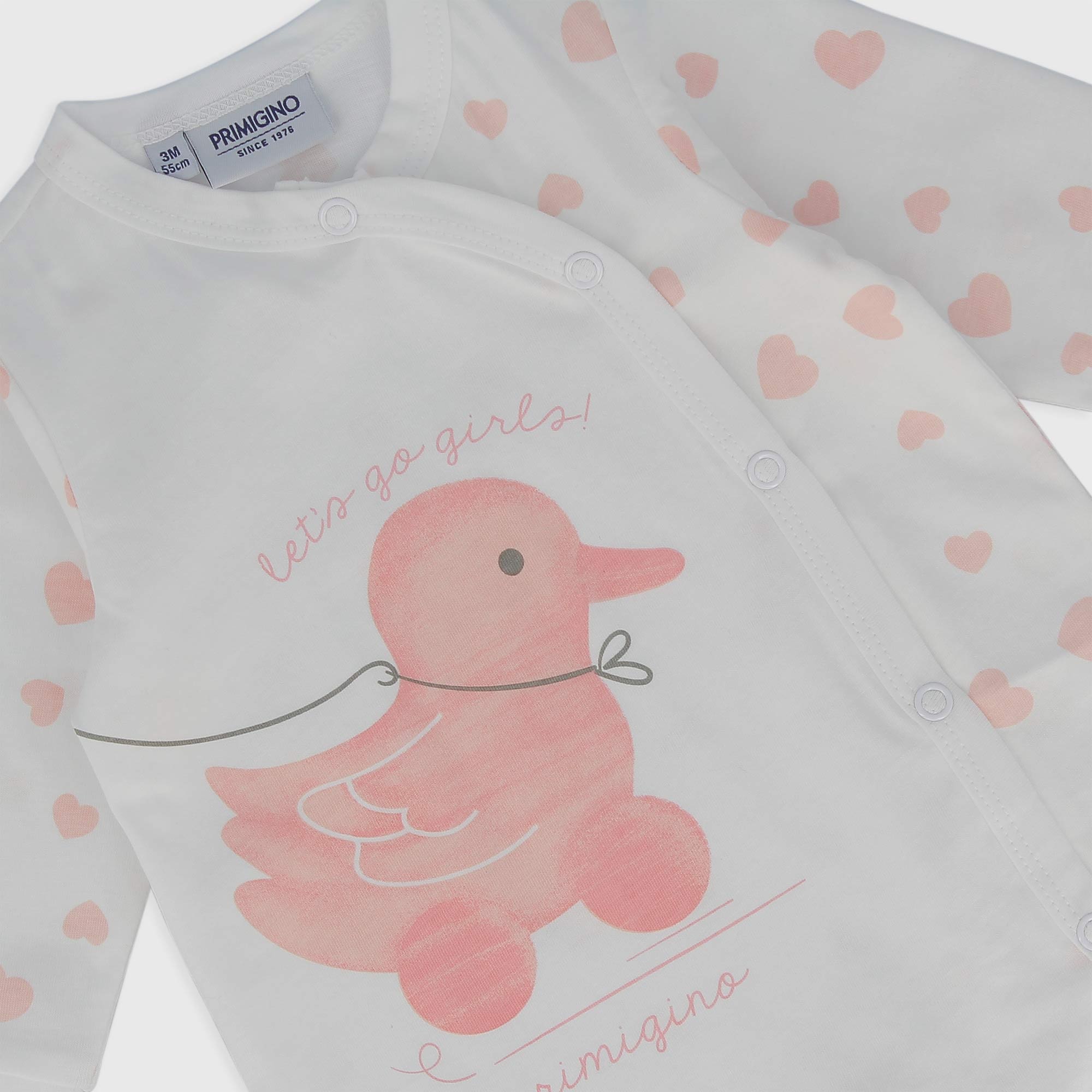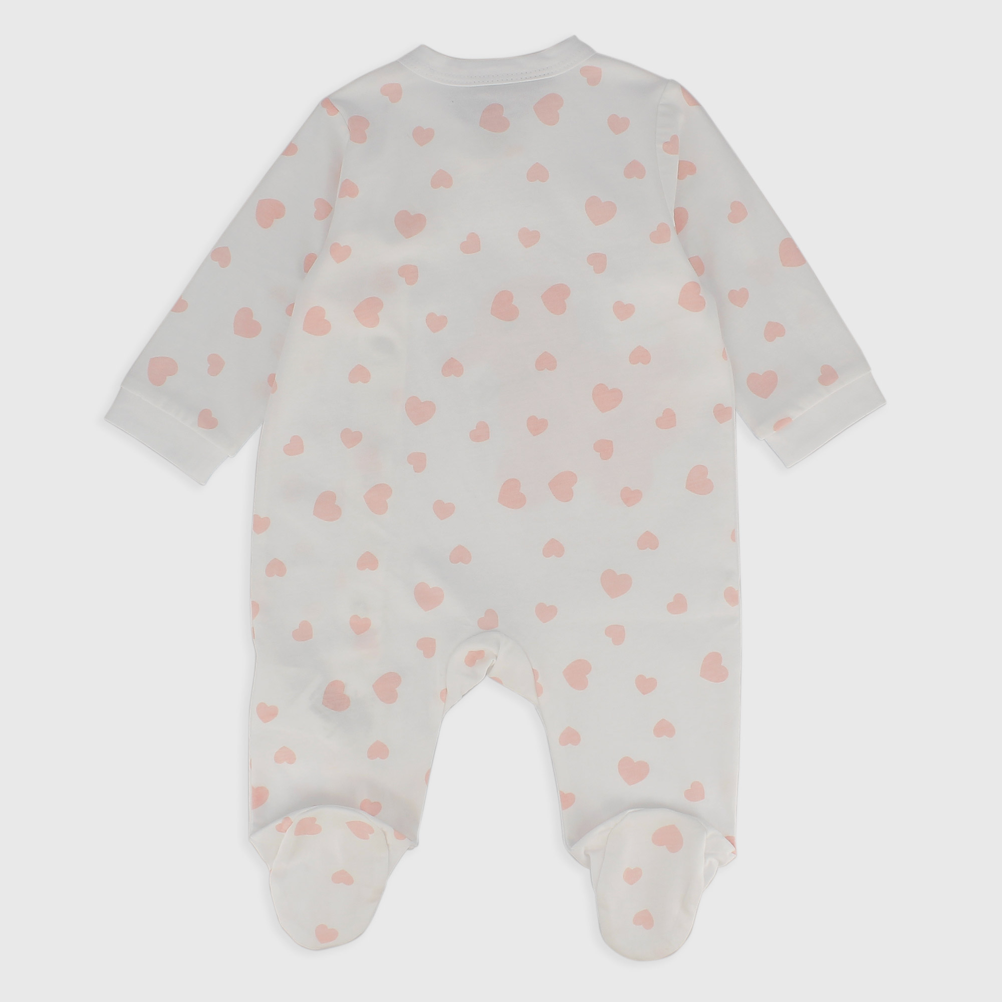 Combinaison en jersey avec col rond, manches longues. Fermeture genre kimono avec boutons-pression. Imprimé avec coeur intégral.