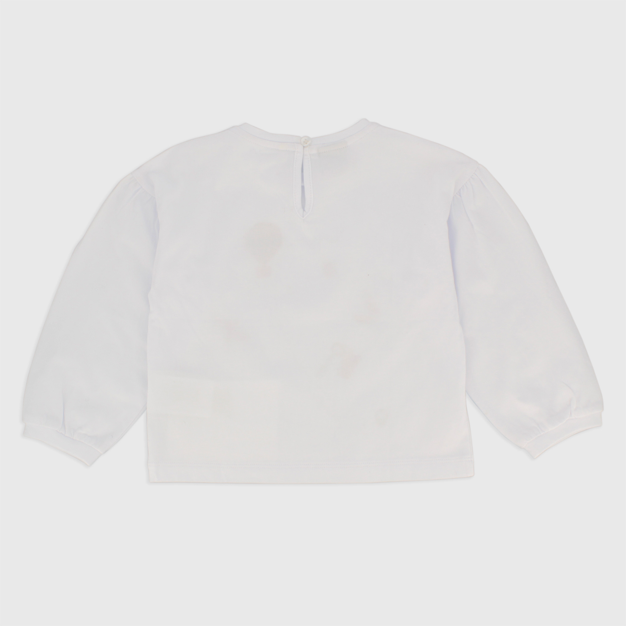 T-shirt en jersey, col équipage, manches longues. Fermeture en forme de goutte d’eau avec bouton derrière. Imprimé devant.