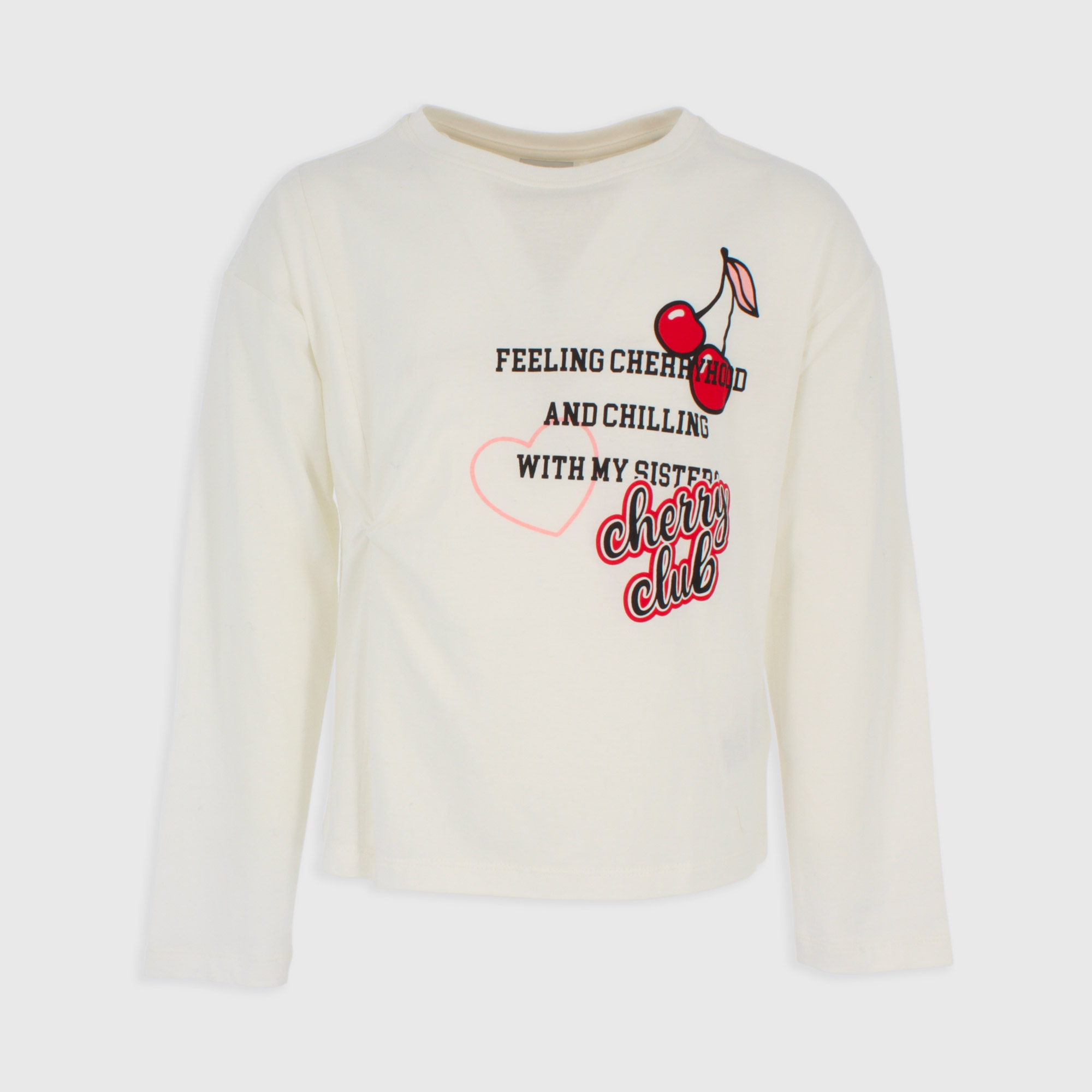 Chemise en jersey à col rond et à manches longues. Imprimé sur le devant et fente sur le bas.