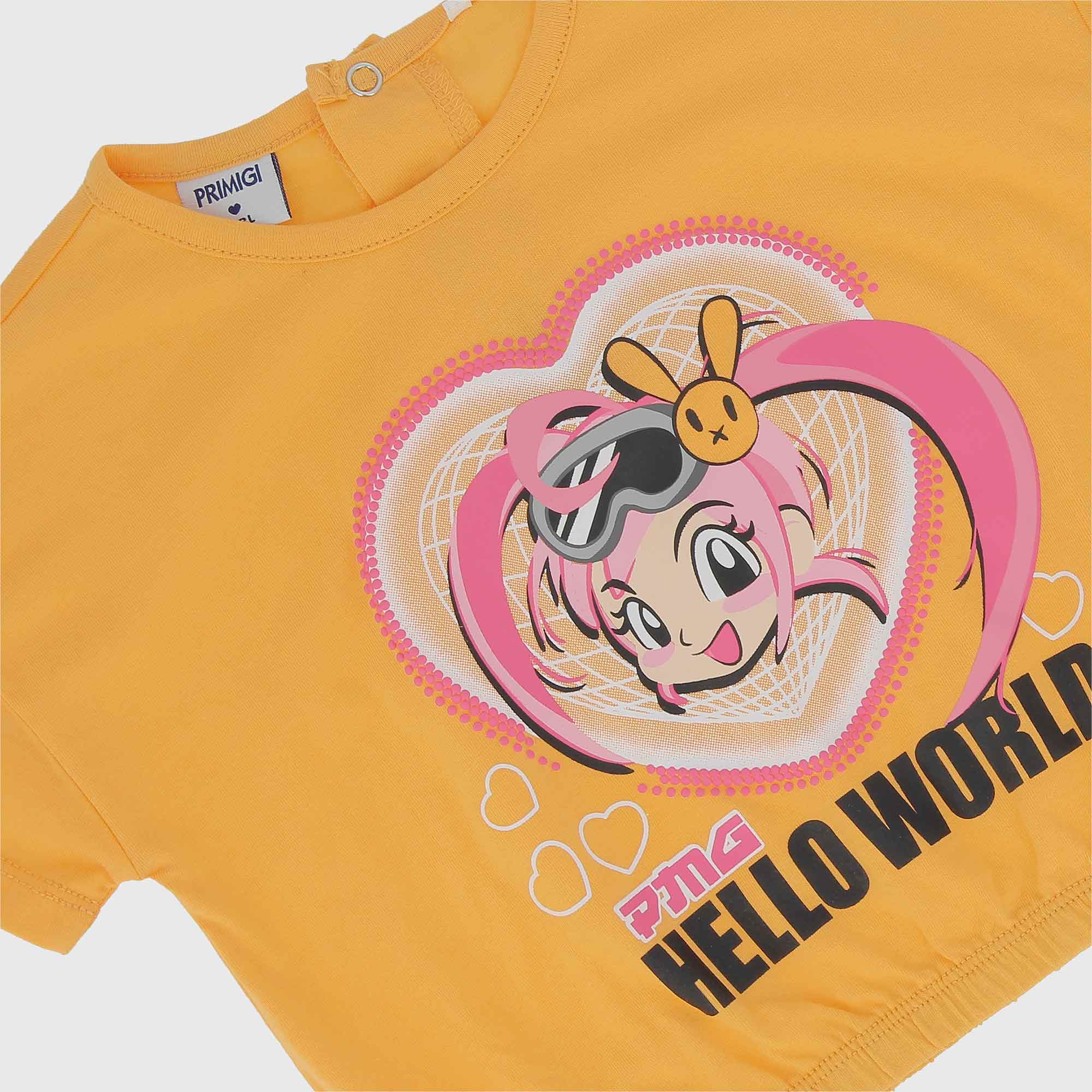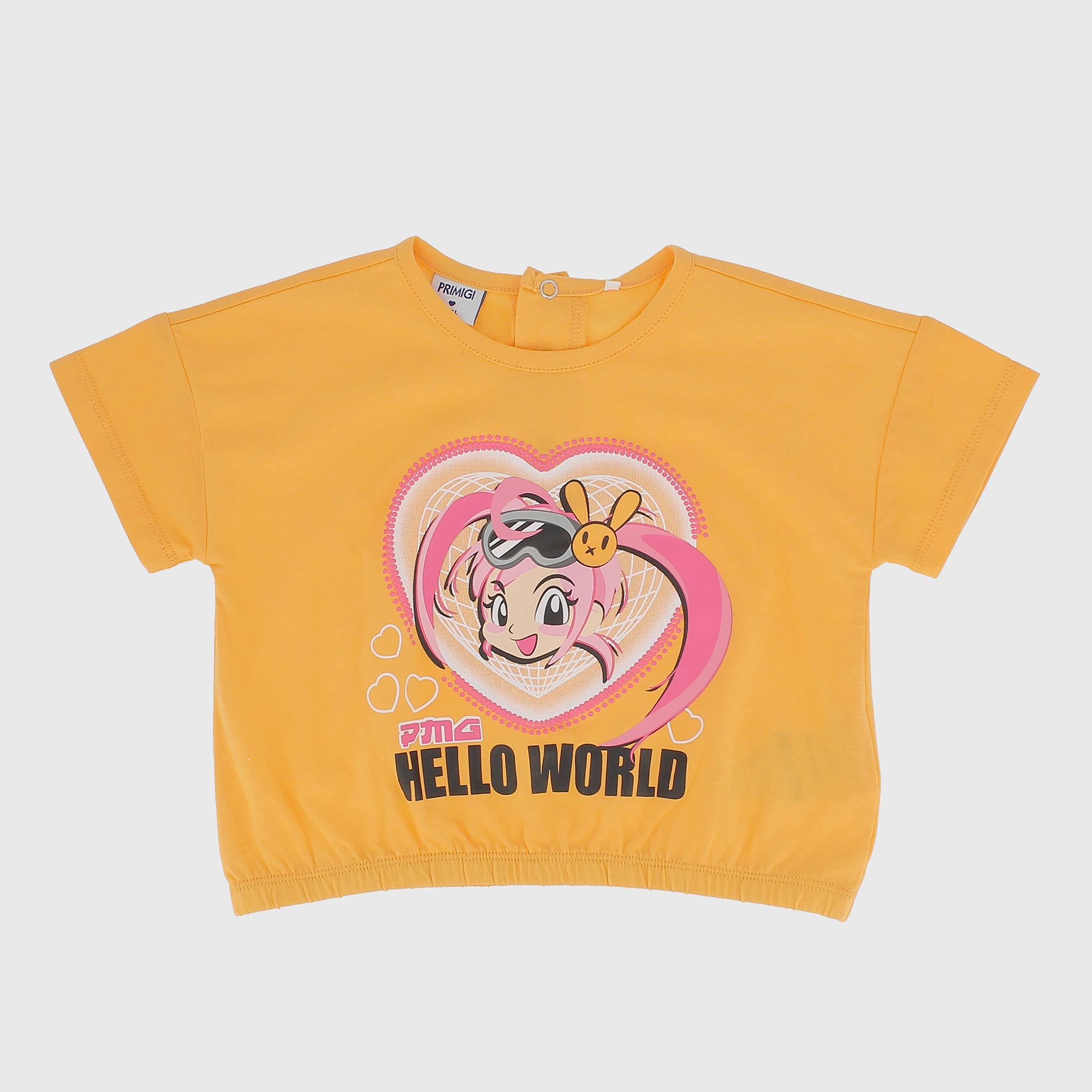 T-shirt en jersey boxy, col rond, manches courtes. Fermeture arrière avec boutons pression. Imprimé au recto. Bas avec élastique.
