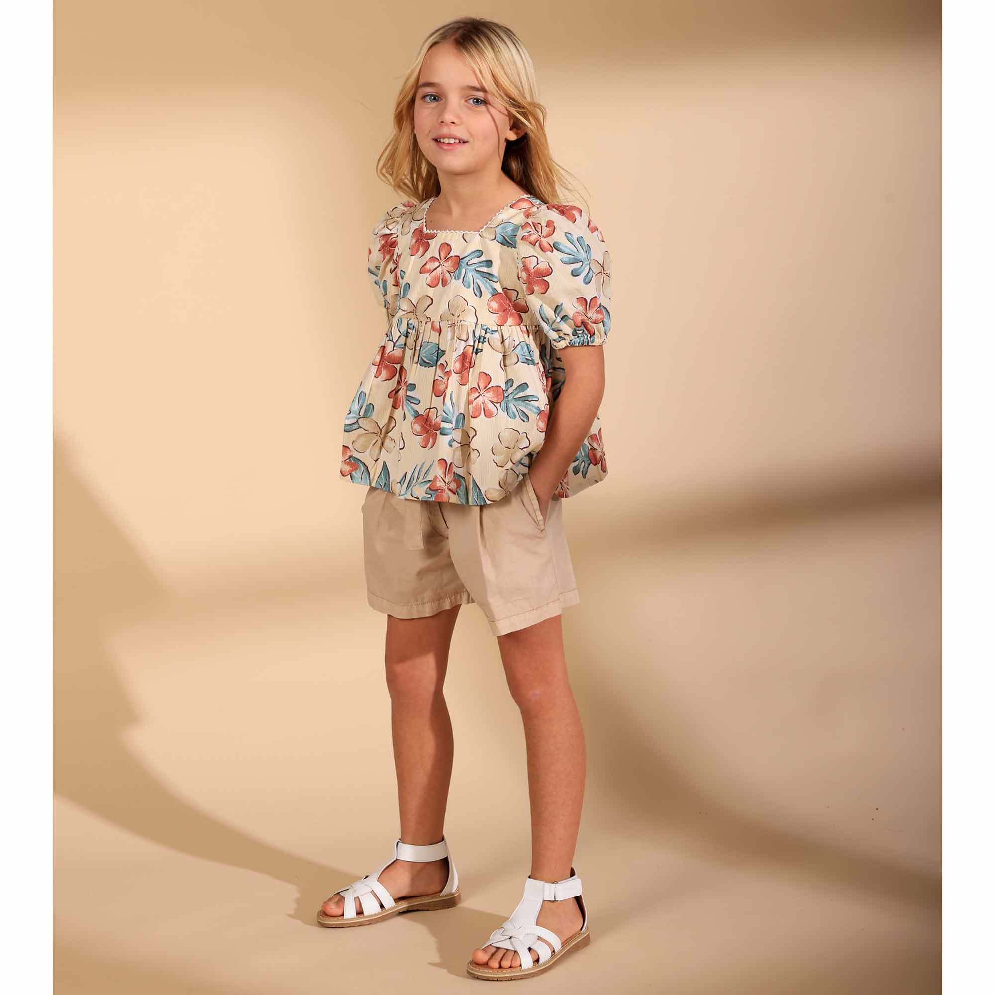 Shorts en popeline effet « usé » avec taille élastique. Fermeture à glissière et bouton interne. Poches lisière et ceinture.