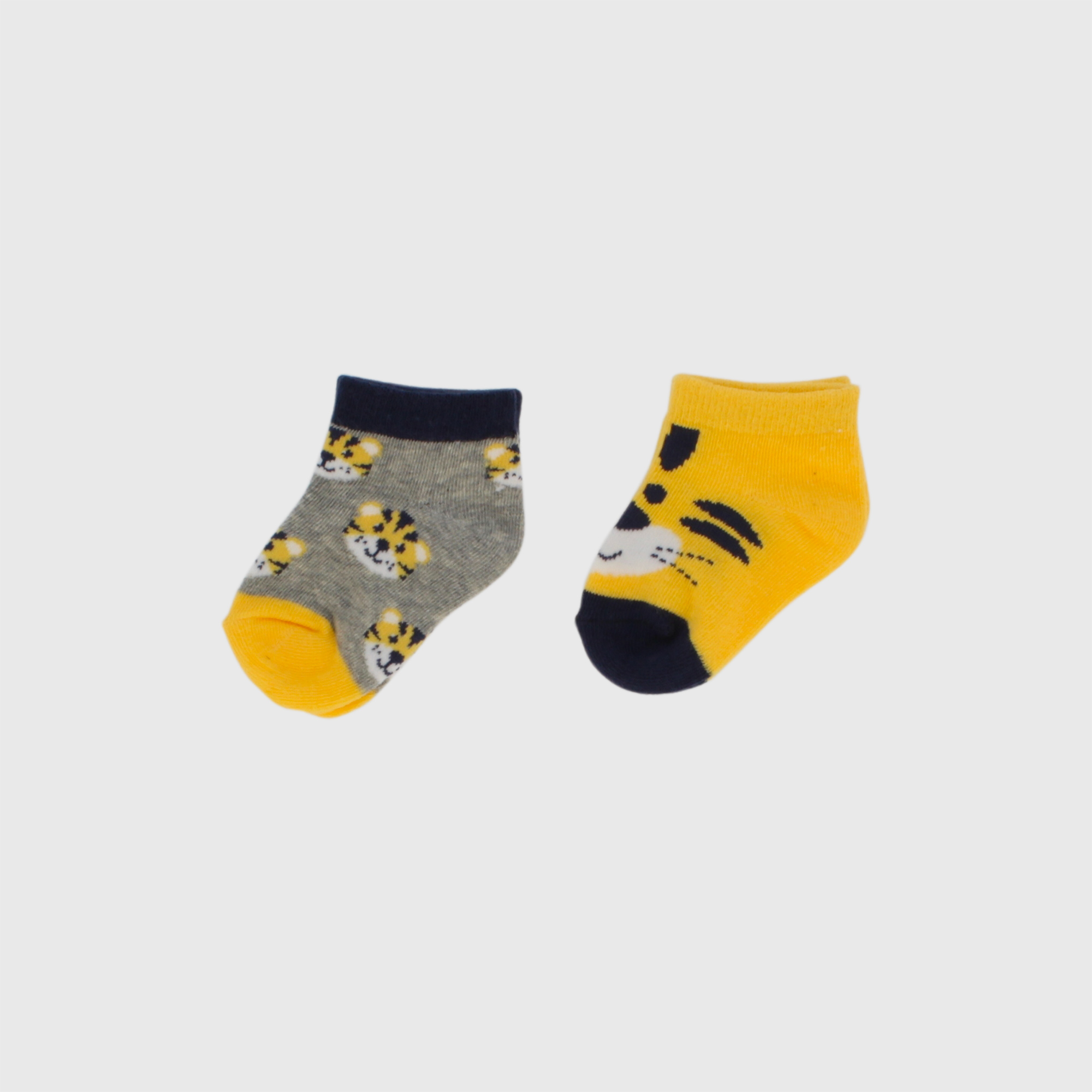 Pack composé de deux paires de chaussettes courtes pour nouveau-nés. Motif tigre. Bords élastiques.