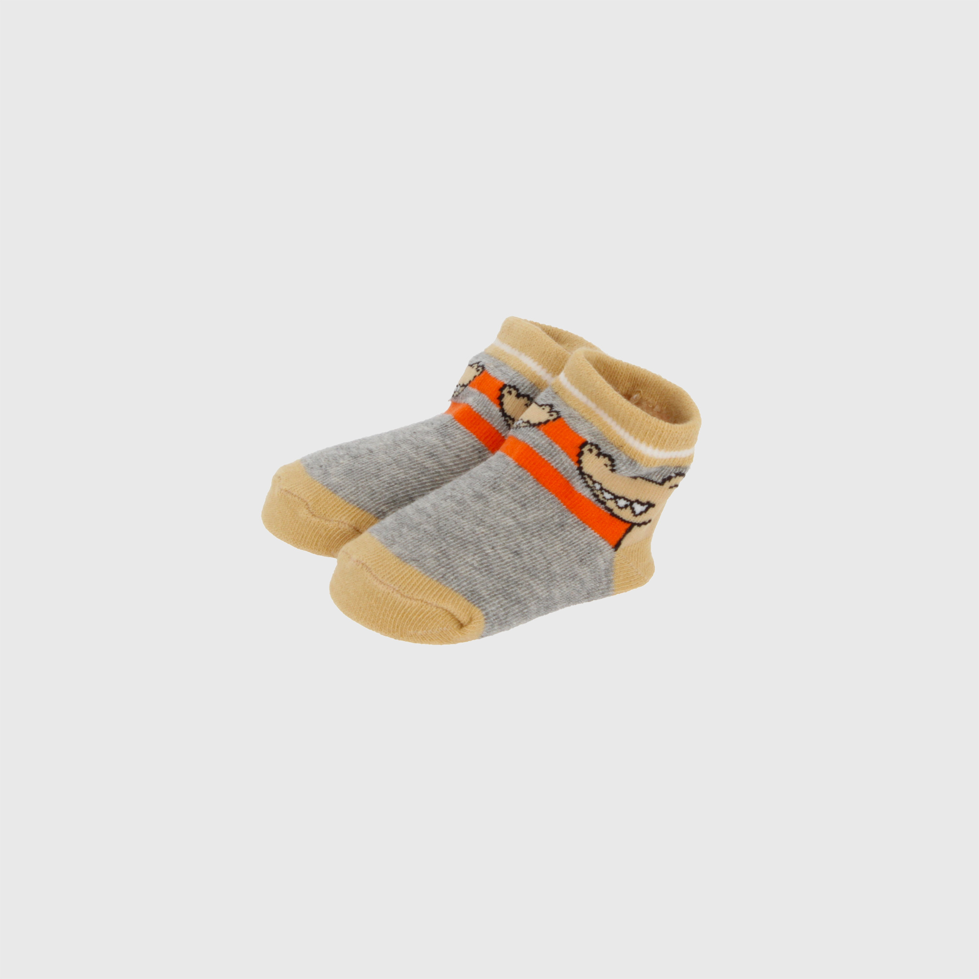 Chaussette nouveau-né antidérapante avec motif de crocodile. Bord élastiqué.