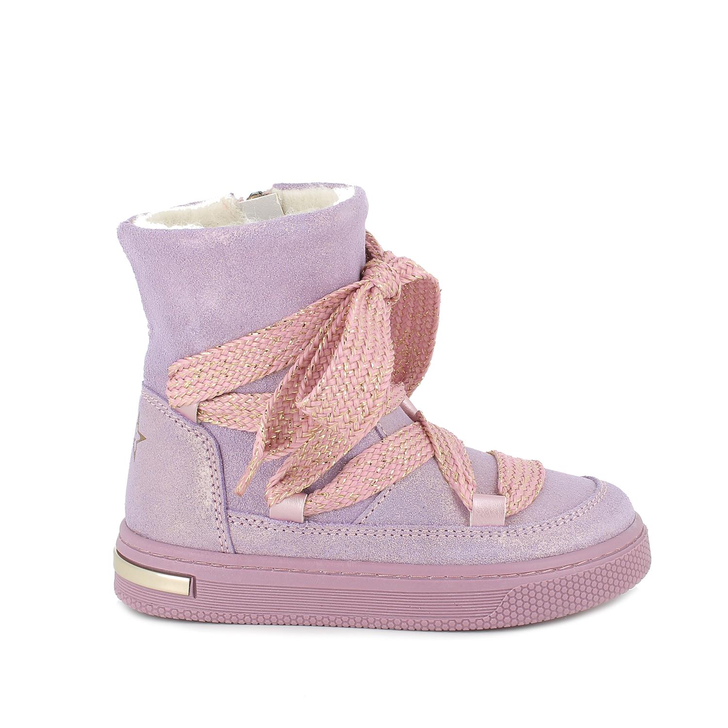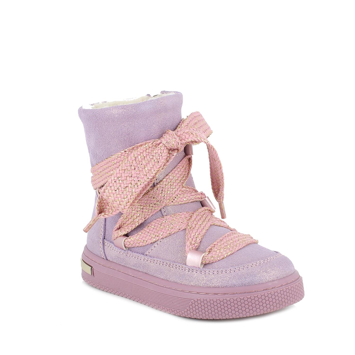 Bottines en cuir pour filles conçues pour les plus à la mode. Elles font penser à des boots pour la neige mais ce sont en tous points des boots à porter au quotidien, sous des tenues de ville pour être cool en toutes circonstances. Ce modèle est en cuir et possède une doublure chaude et accueillante. Il est facile à enfiler sans défaire le lacet. La semelle intérieure anatomique est amovible et recouverte de cuir pour assurer transpirabilité et hygiène.