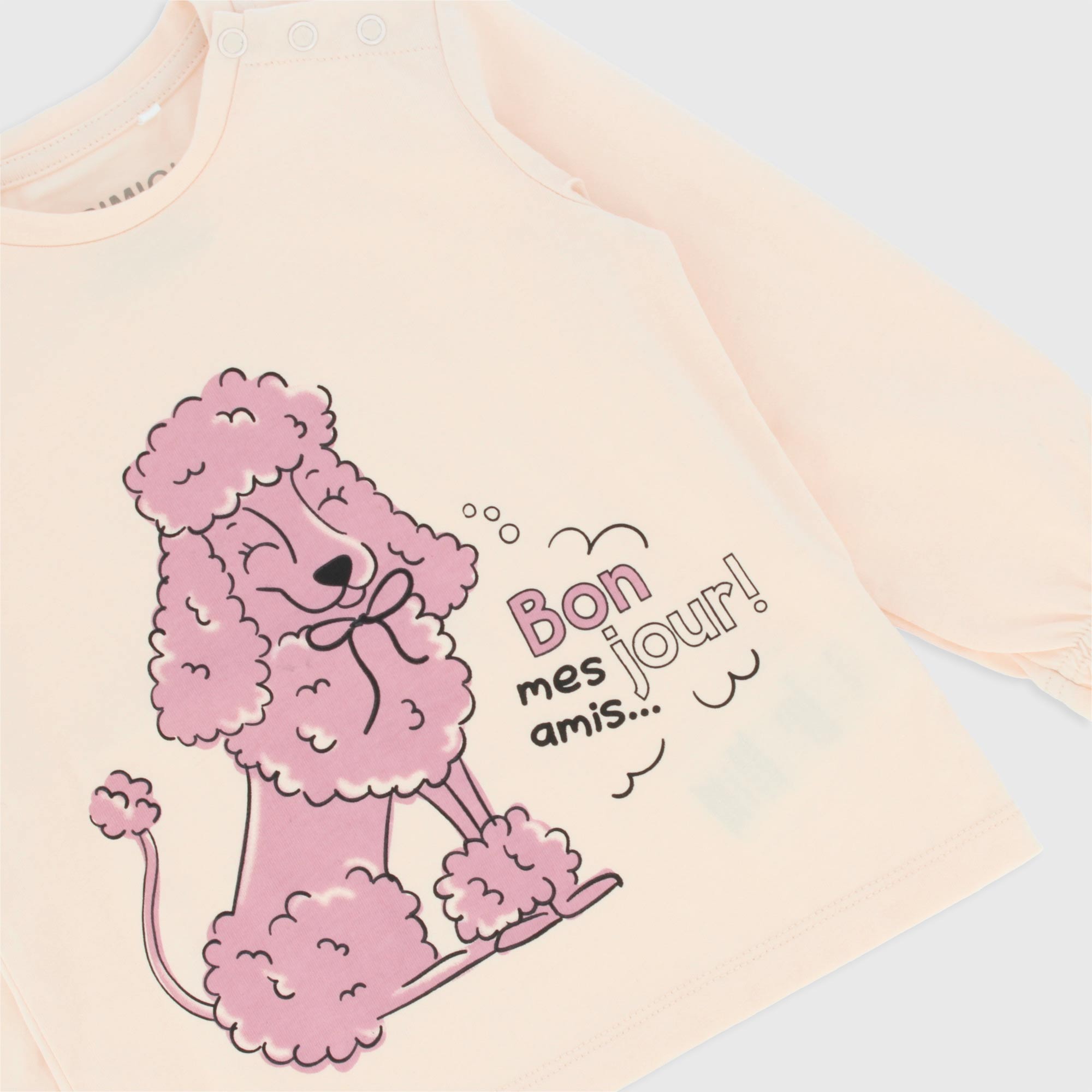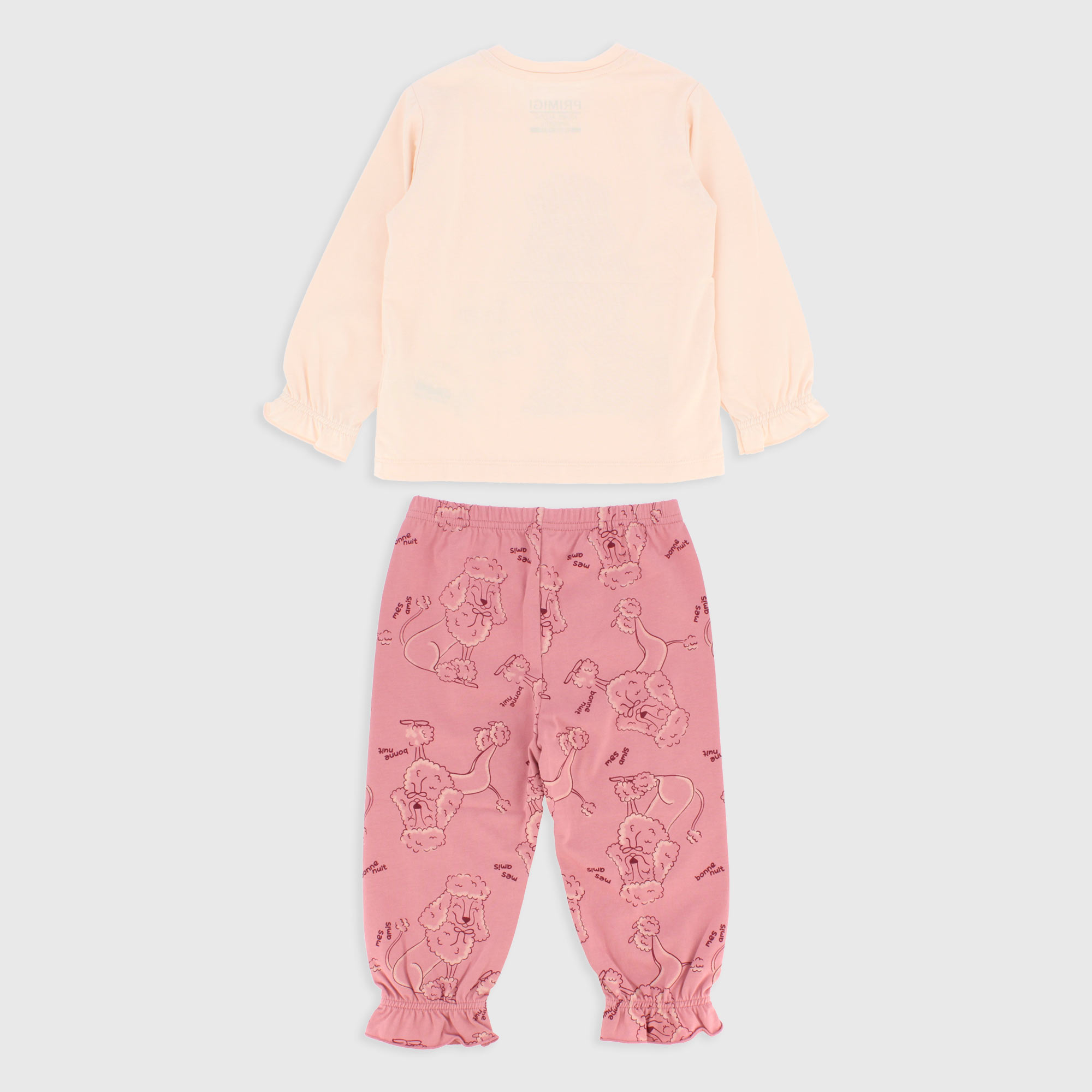 Combiné pyjama en jersey. pull col rond manches longues. fermeture avec boutons automatiques sur l'épaule. imprimé devant. pantalon avec taille élastique e imprimé all-over barboncino.