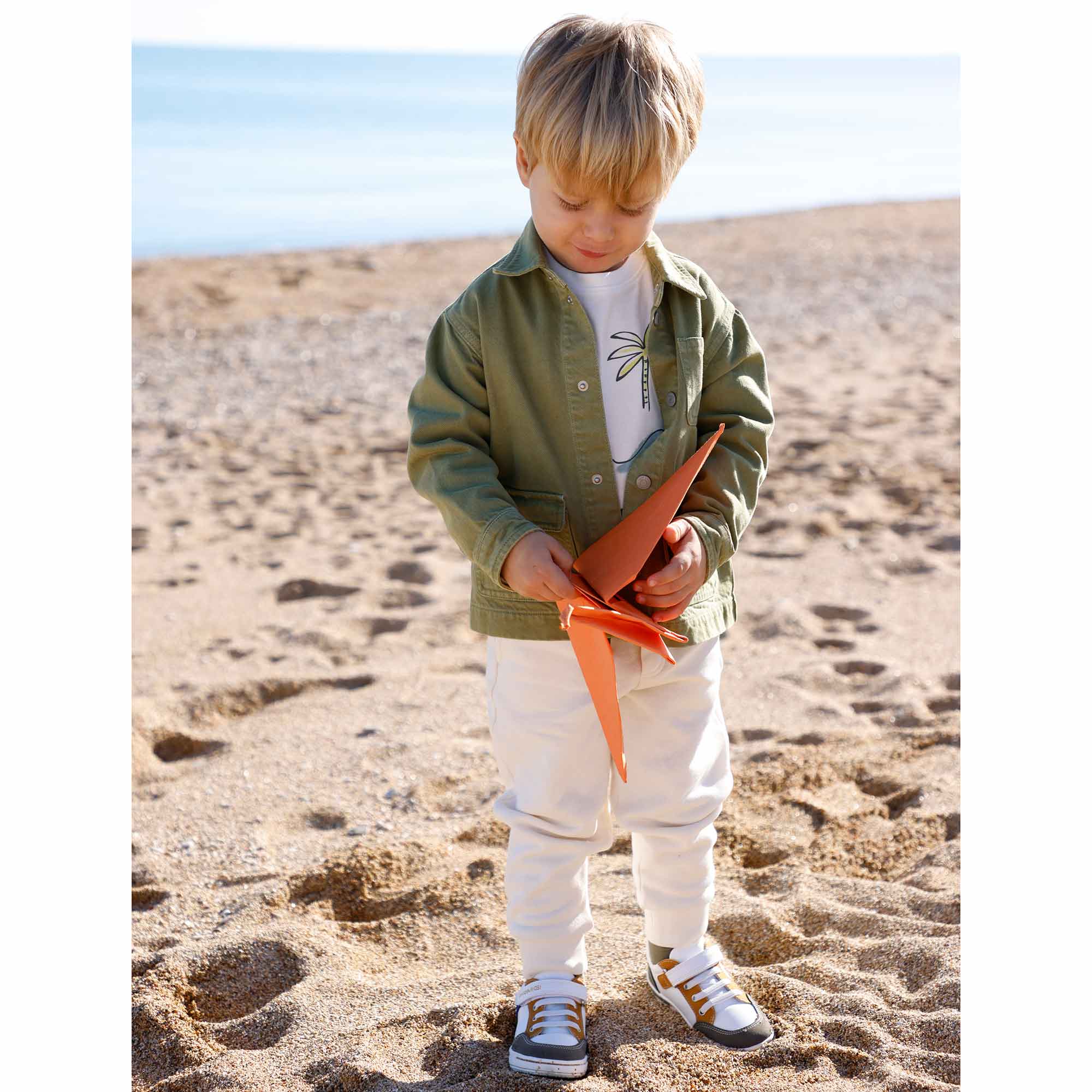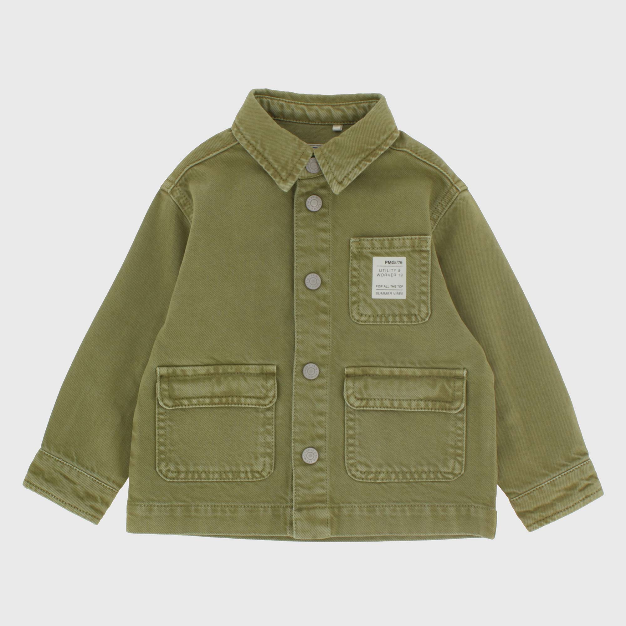 Overshirt en toile de coton avec col, à manches longues. Fermeture devant avec boutons automatiques. Poches appliquées avec imprimé devant.