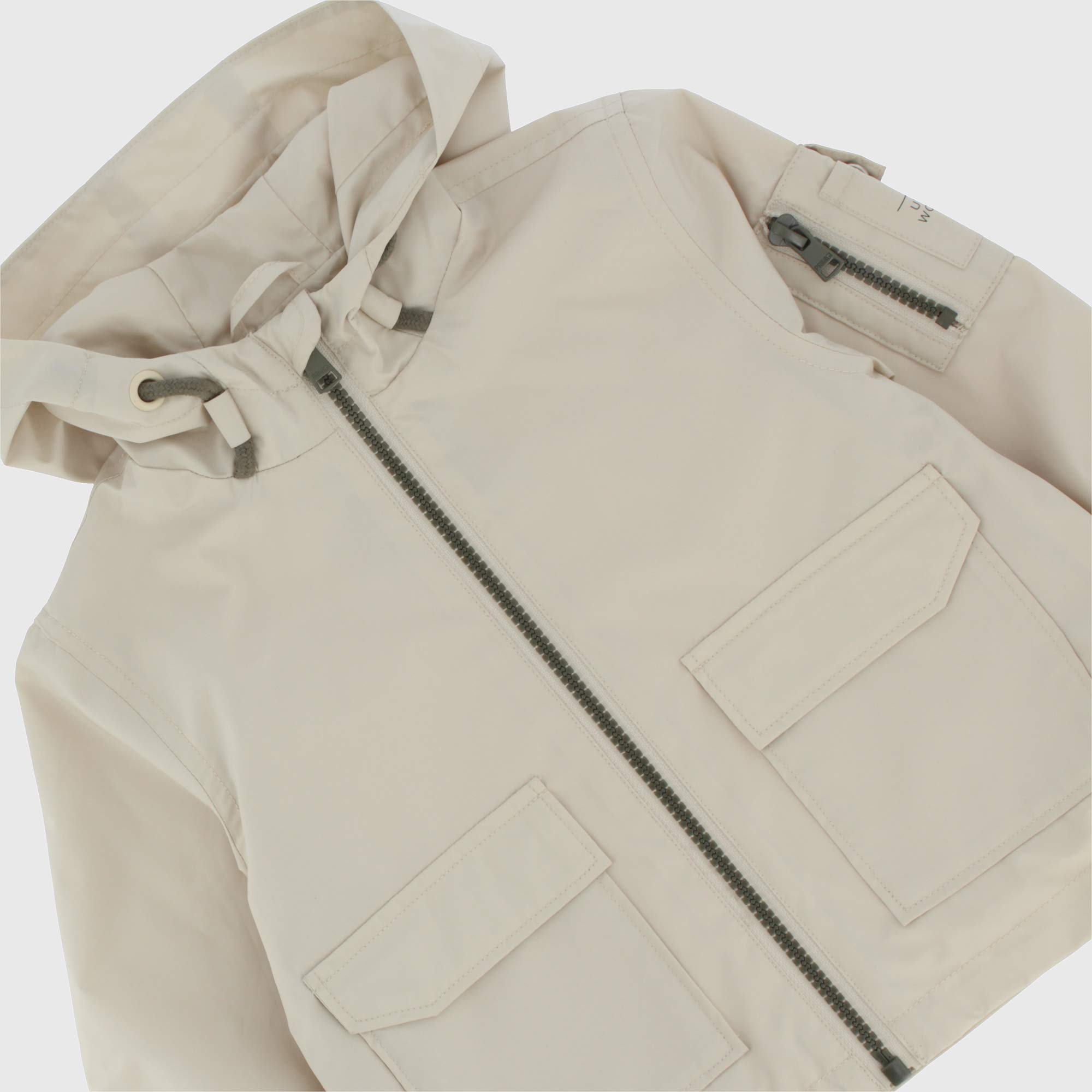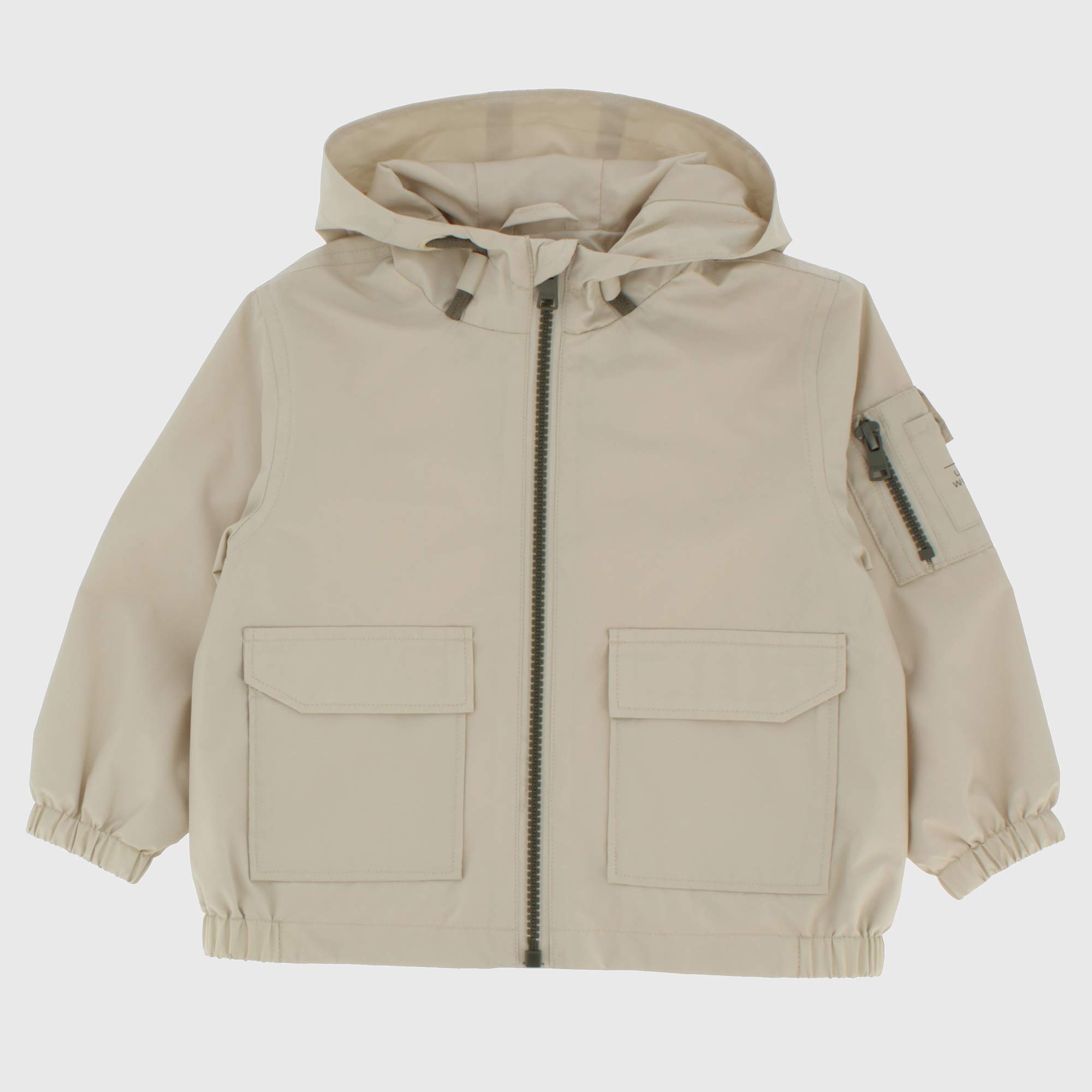 Blouson avec capuchon à manches longues. Fermeture devant avec zip à contraste. Poches appliquées avec rabat devant. Poche sur le bras, avec zip à contraste et petit imprimé. Poignets avec élastique .