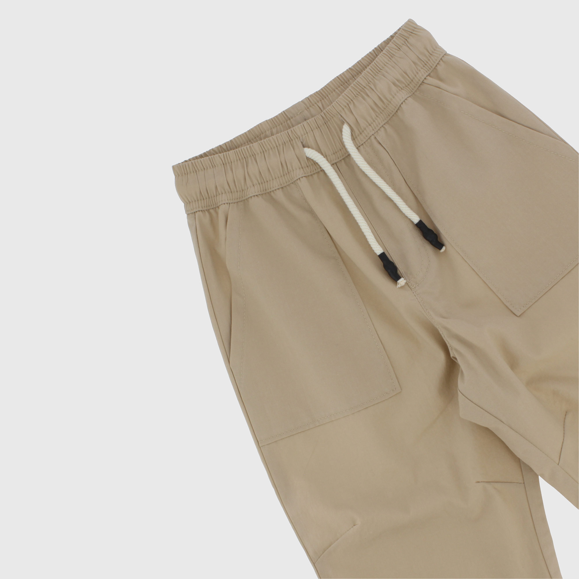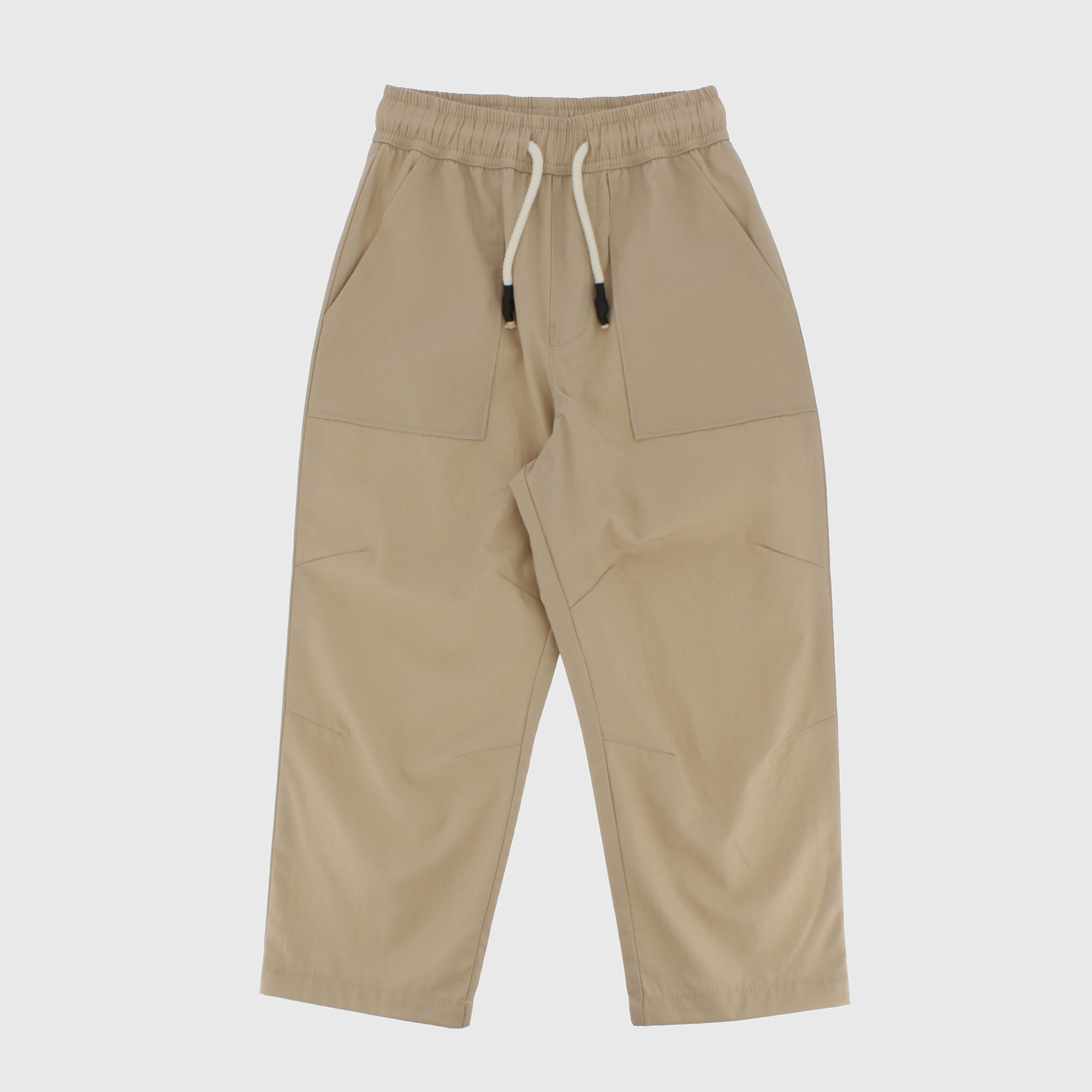 Pantalon en popeline avec taille élastique et lacets devant. Poches françaises.