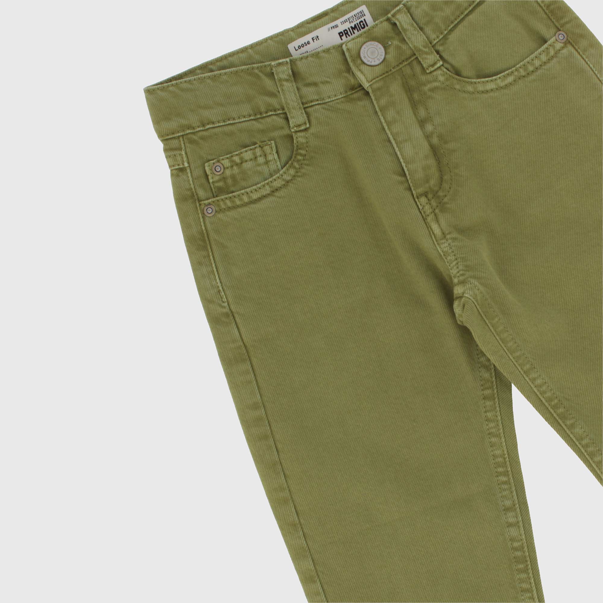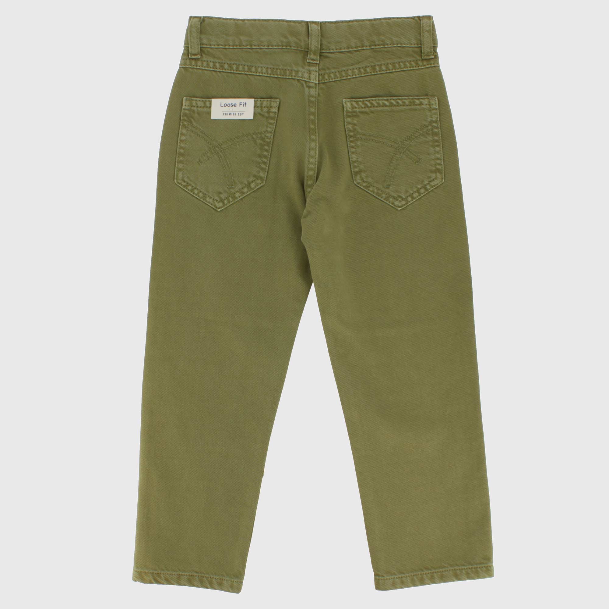 Pantalon en toile de coton avec taille réglable à l'intérieur. Fermeture avec boutons et zip. Cinq poches. Loose fit.
