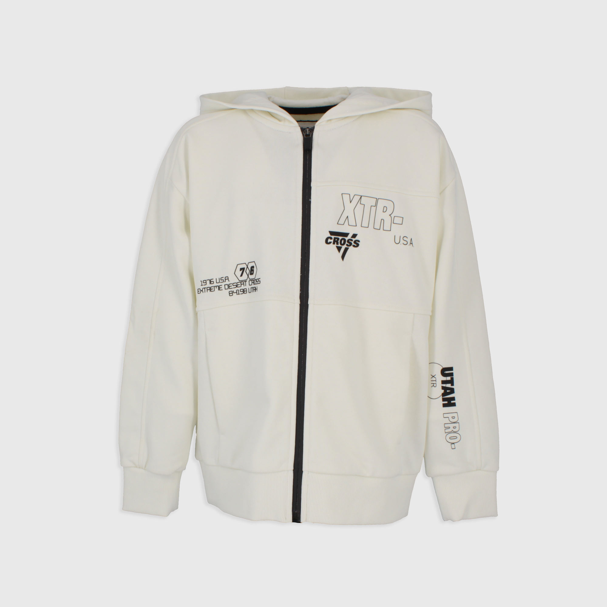 Pull en molleton ouvert avec capuchon, à manches longues. Fermeture avec zip devant à contraste. Poches à lisière. Imprimé avec détails haute définition. Poignets et fond côtelés.