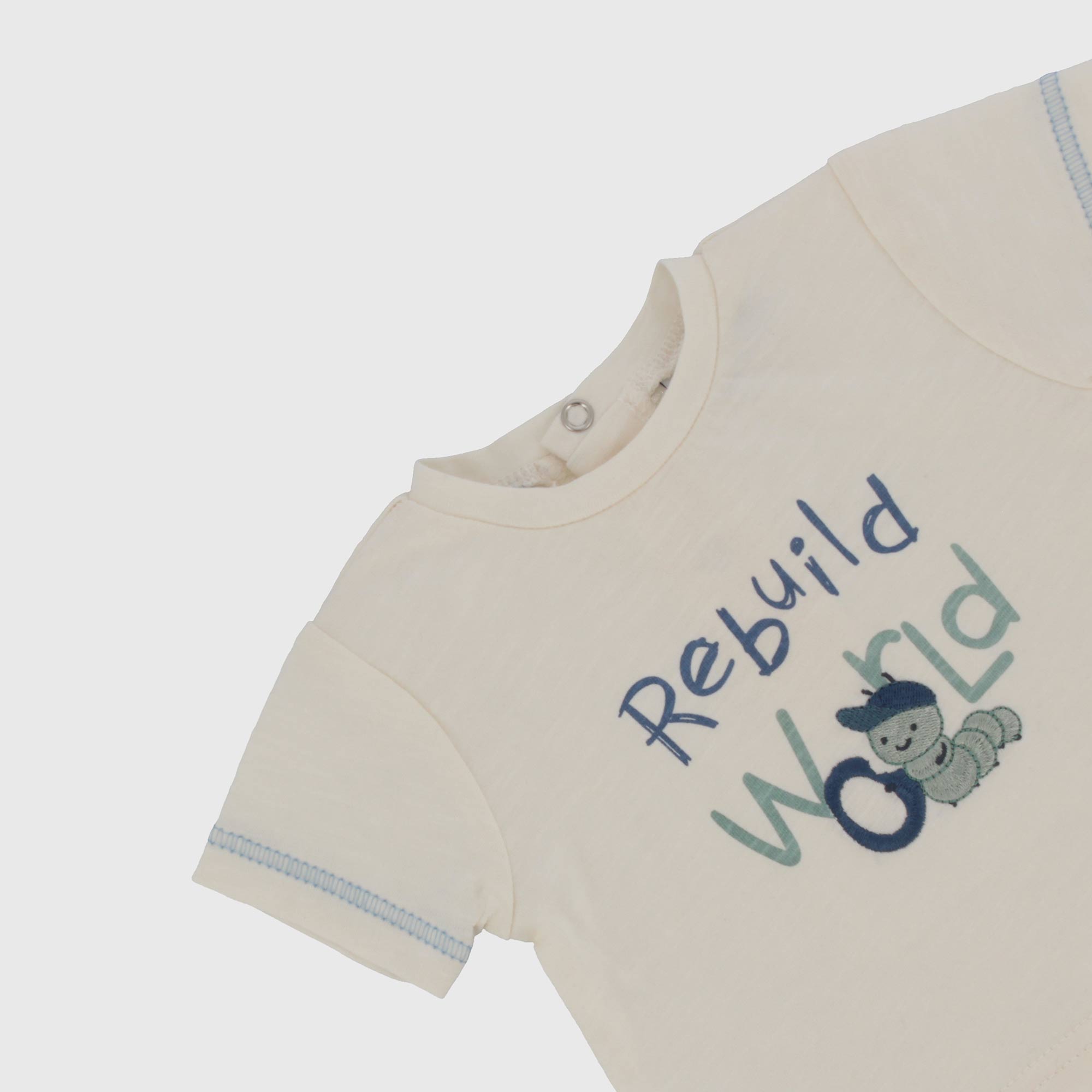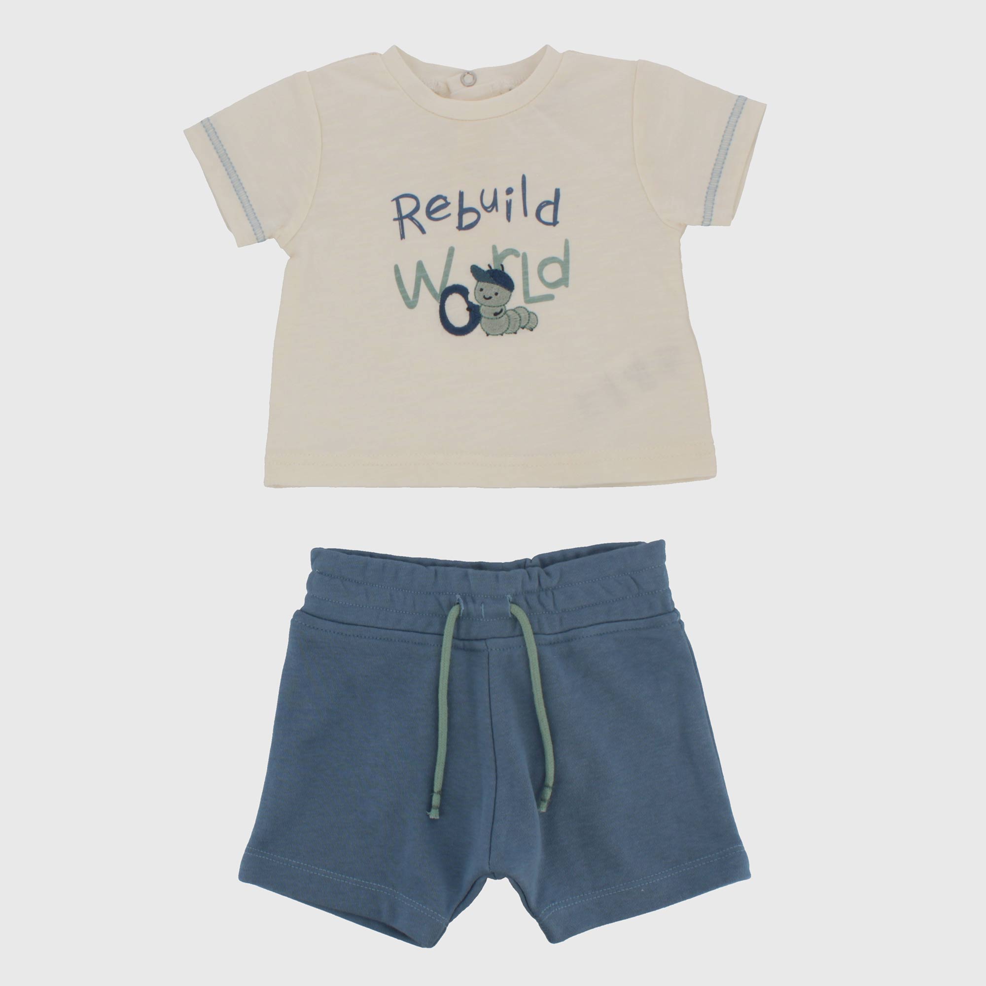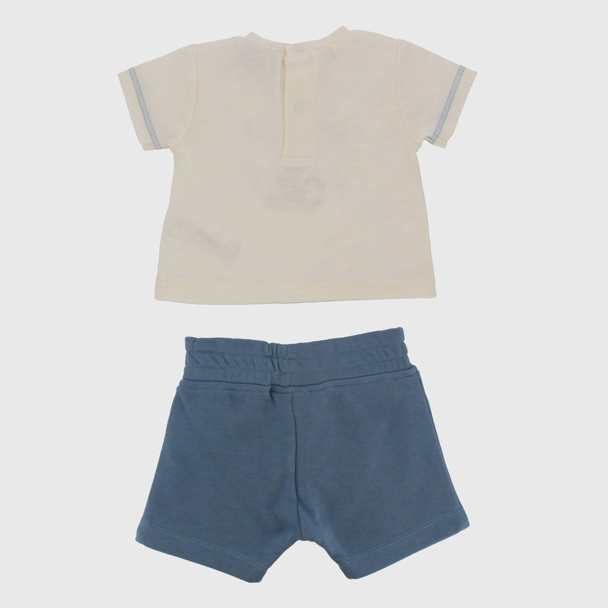 Complet deux pièces, T-shirt en jersey col-rond, à manches courtes . Fermeture derrière avec boutons automatiques. Imprimé et broderie devant. Pantalon en molleton avec taille élastique et lacets devant à contraste.