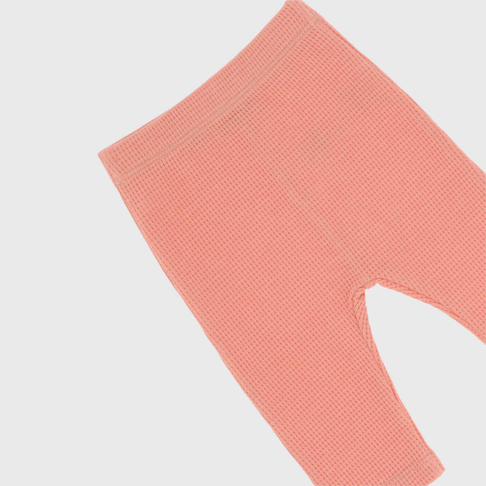 Complet, avec façonnage à nid d'abeille, composé de deux pièces. T-shirt à manches longues avec volants sur l'épaule. Fermeture avec boutons automatiques derrière. Pantalon avec taille élastique.