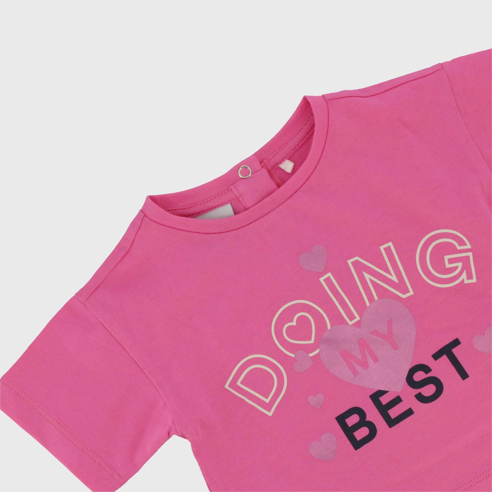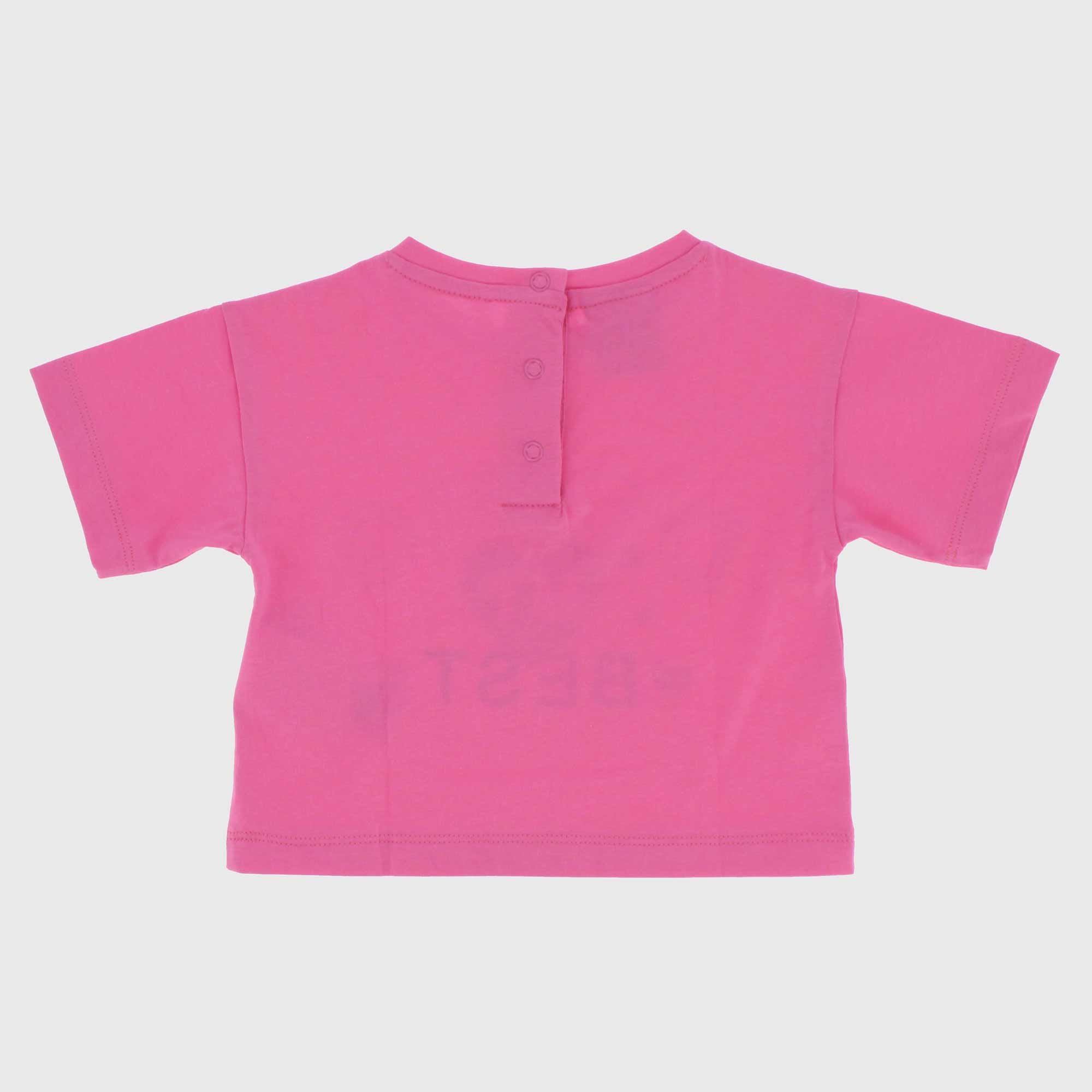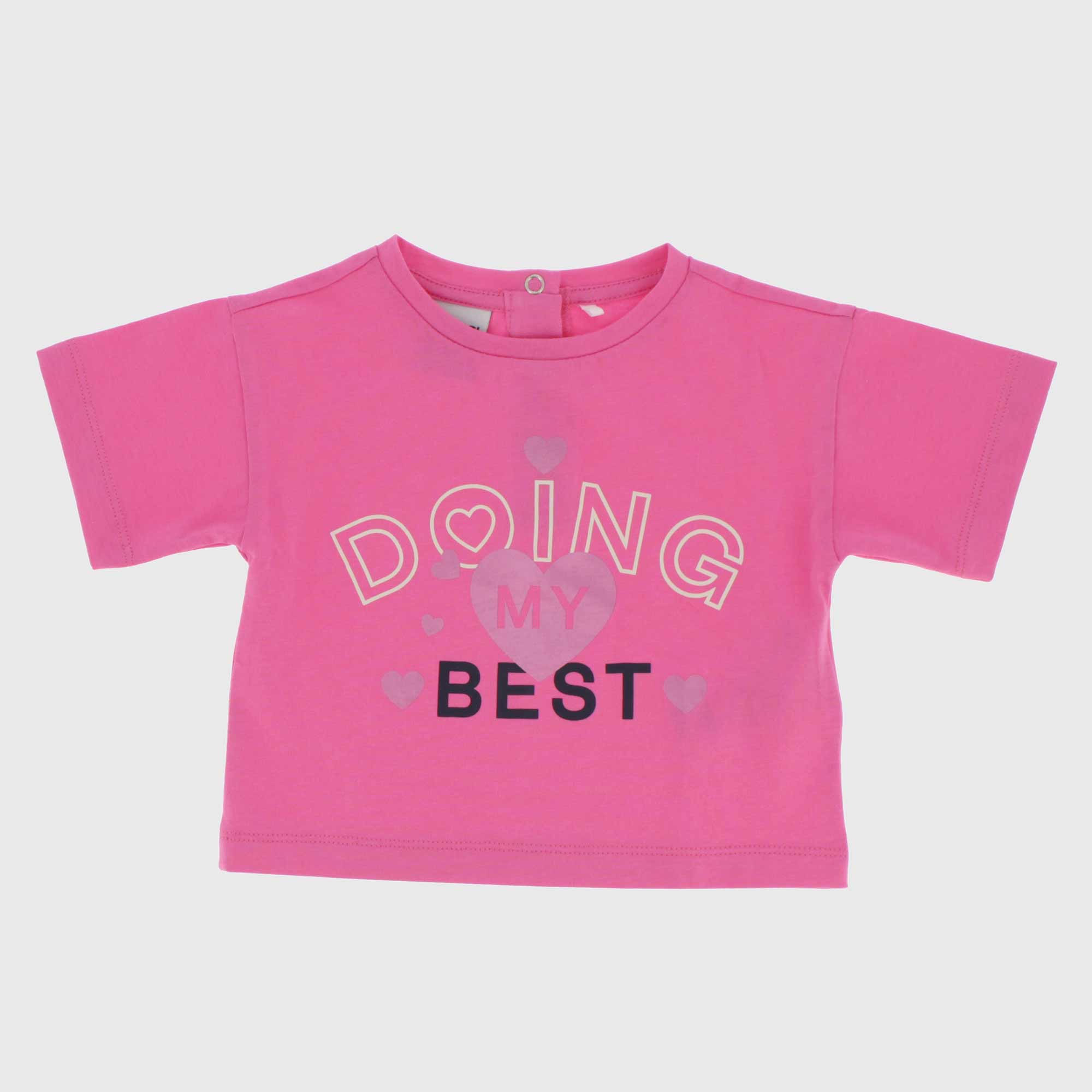 T-shirt en jersey, col-rond, à manches courtes . Fermeture derrière avec boutons automatiques. Imprimé avec détails métallisés.