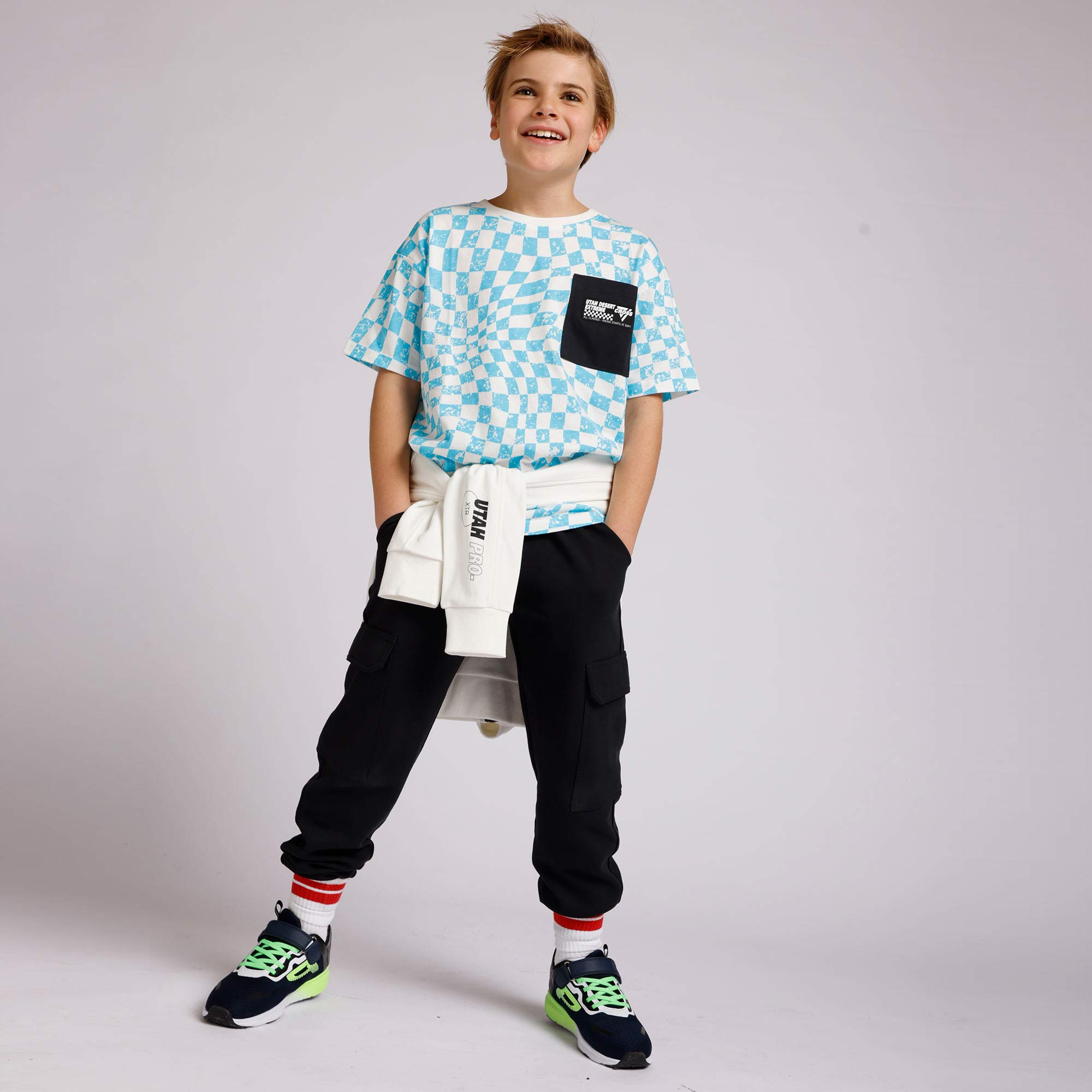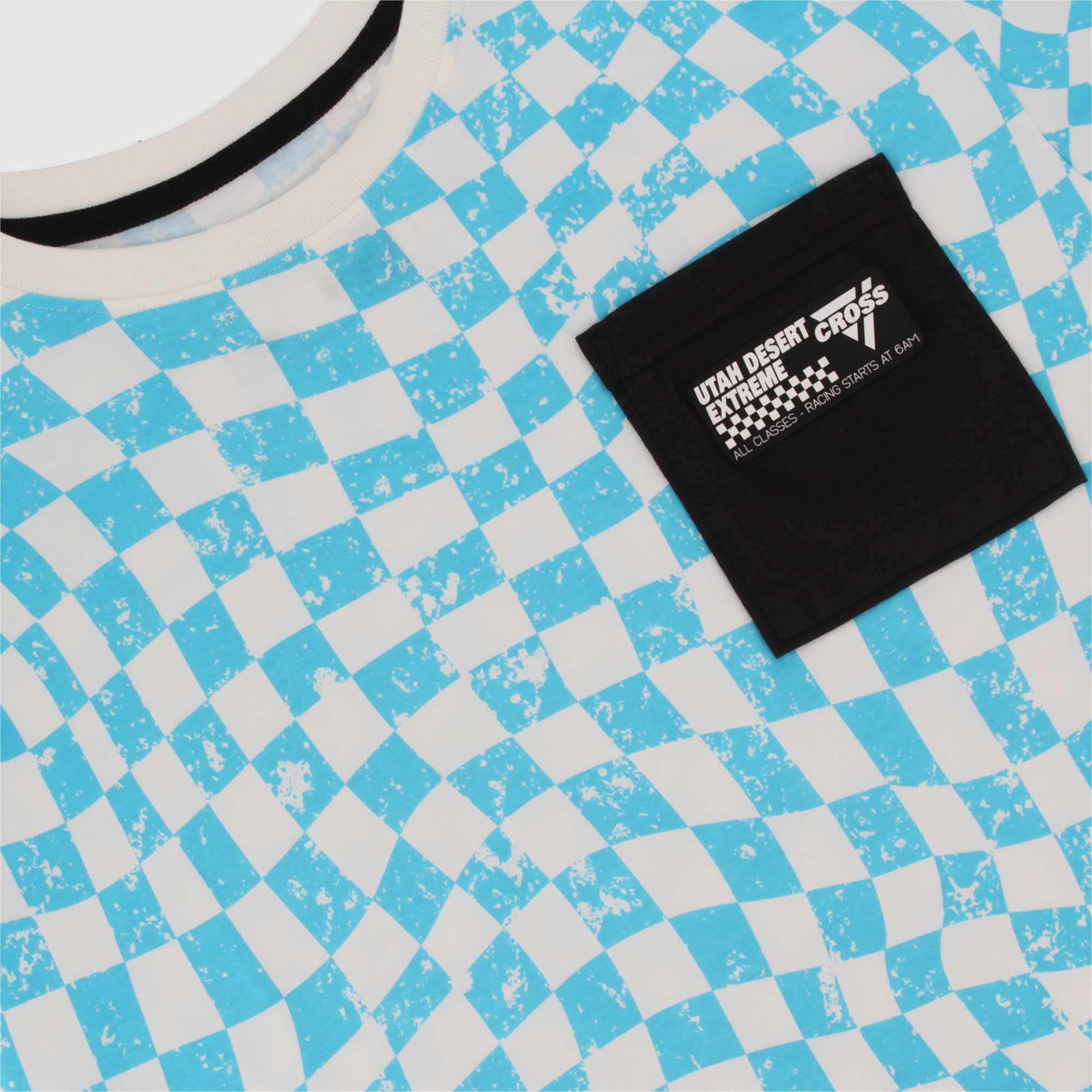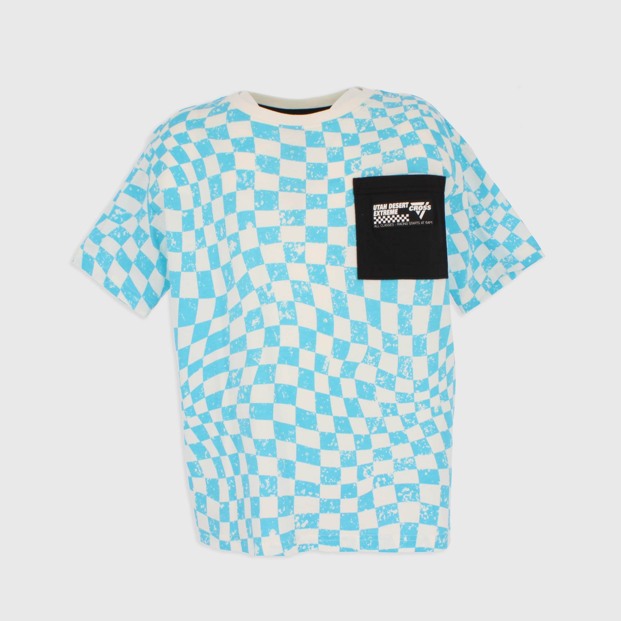 T-shirt oversize en jersey, col-rond, à manches courtes . Imprimé all-over et petite poche avec patch en caoutchouc devant.