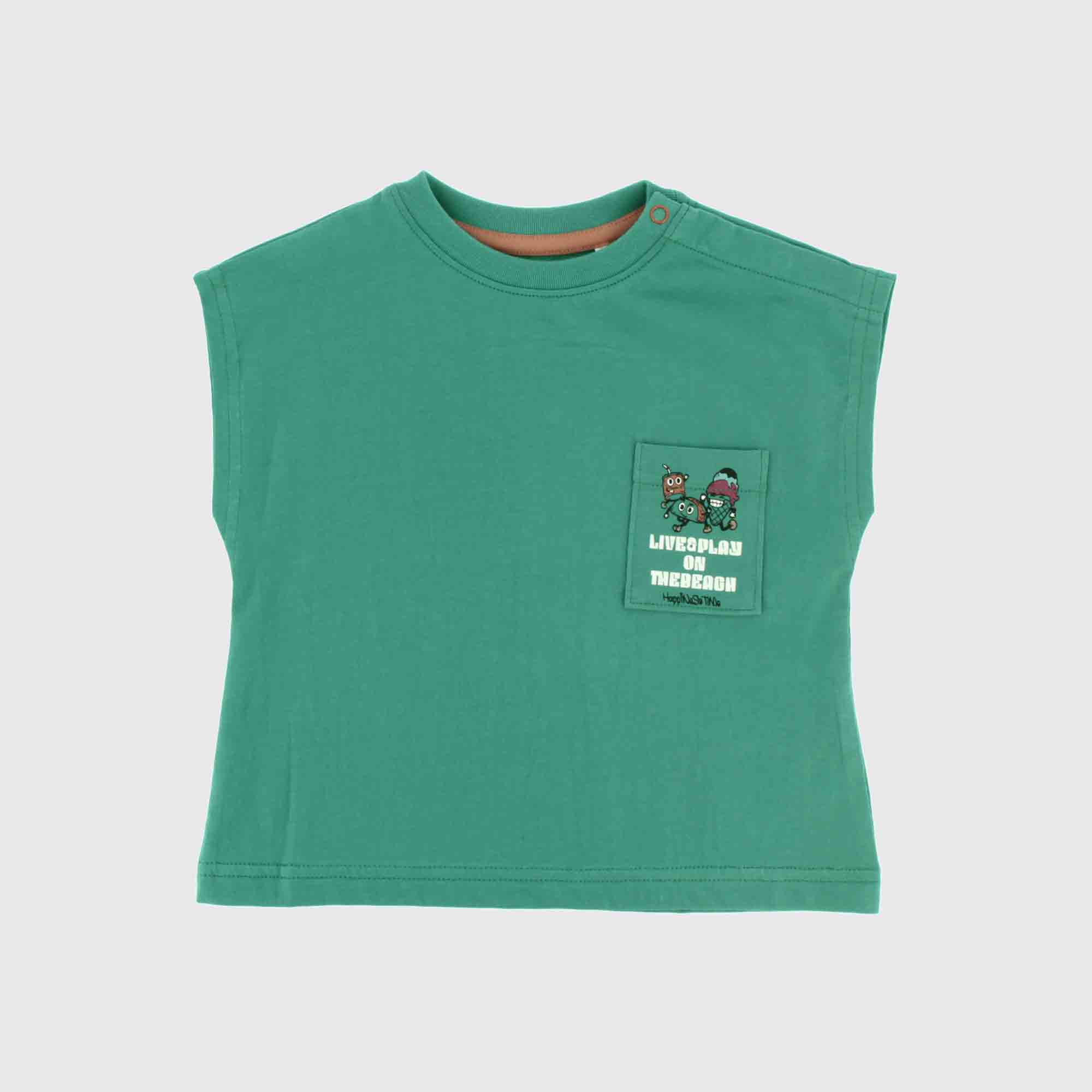 Débardeur oversize en jersey, col rond. Fermeture avec boutons automatiques sur l'épaule. Petite poche sur poitrine et imprimé devant et derrière.