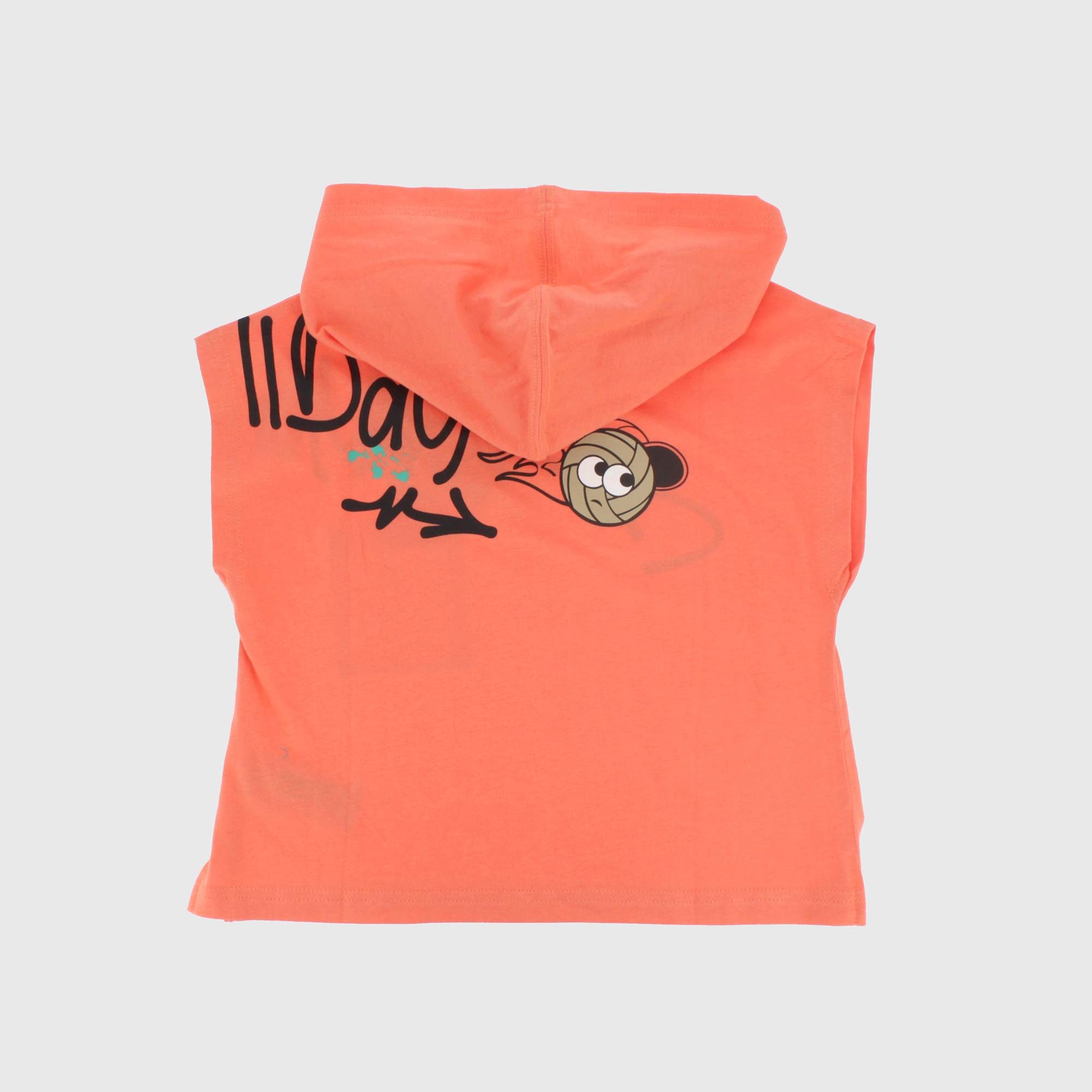 Débardeur oversize en jersey avec capuchon. Petite poche sur poitrine et imprimé devant et derrière.