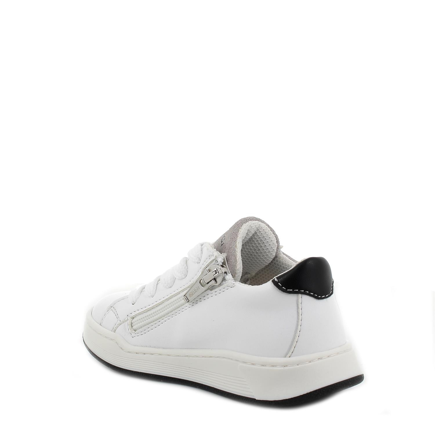 Les baskets blanches sont un incontournable de la garde-robe d'été de chaque garçon et fille. Celles-ci sont basses, disposent de lacets mais aussi d'un zip interne pratique qui permet de les enfiler rapidement. La doublure est en matière technique douce et la semelle intérieure en cuir peut être retirée pour sécher à l'air libre. La semelle plate est robuste et cousue sur la tige, elle est ainsi toujours parfaite.