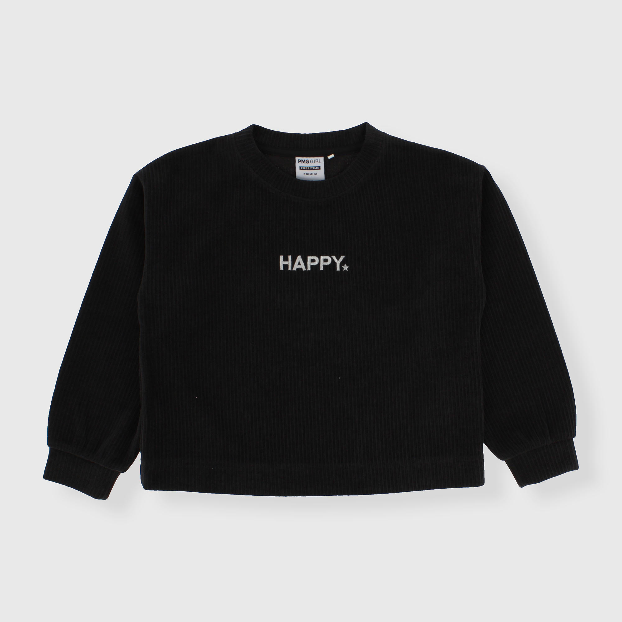 Sweat-shirt côtelé, col rond, à manches longues. Petite broderie lurex sur le devant.