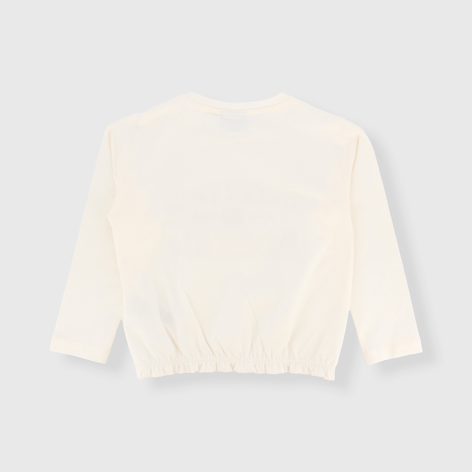 T-shirt en jersey stretch, col rond, manches longues. Fermeture par bouton pression sur l'épaule. Impression effet caoutchouc sur le devant. Bas froncé avec élastique.