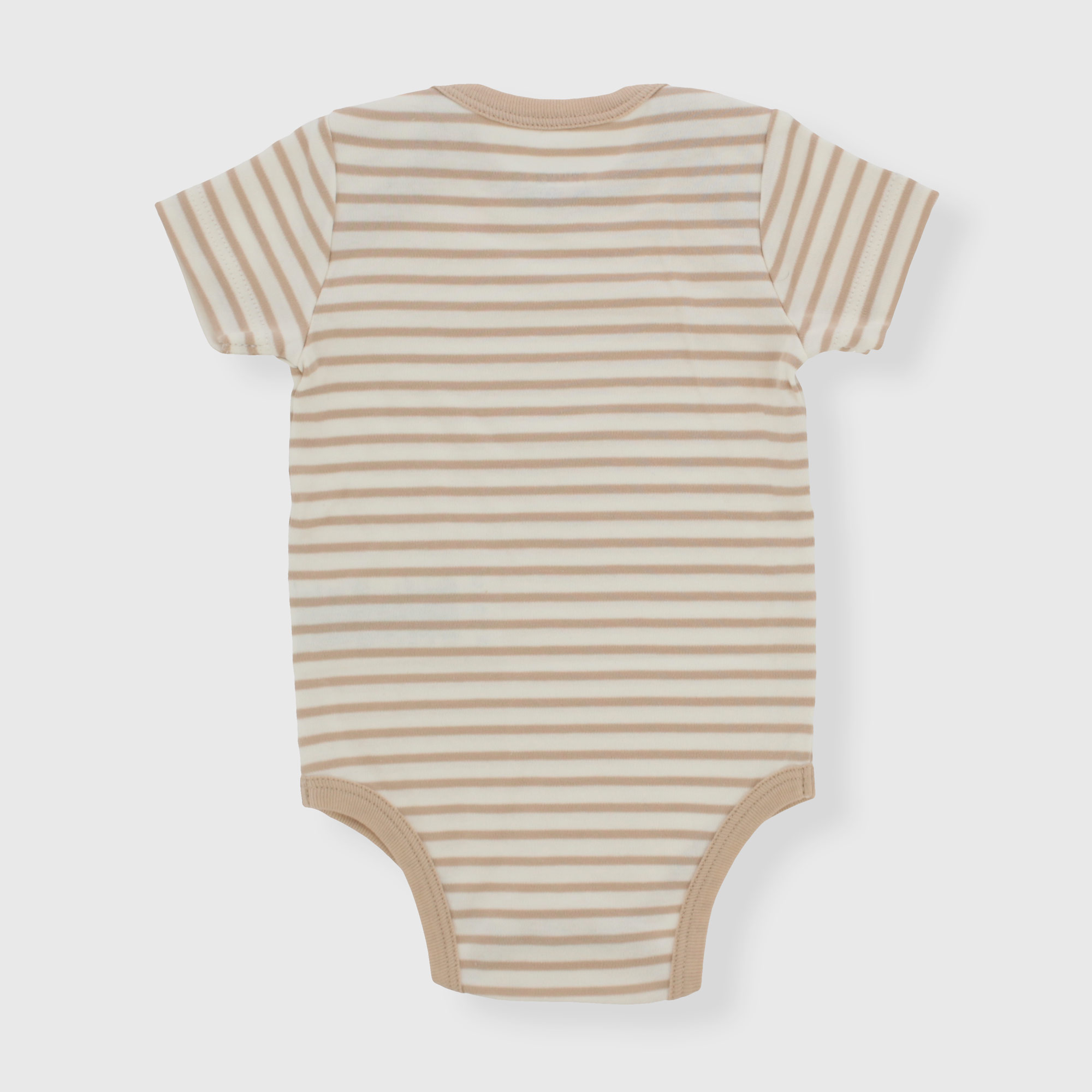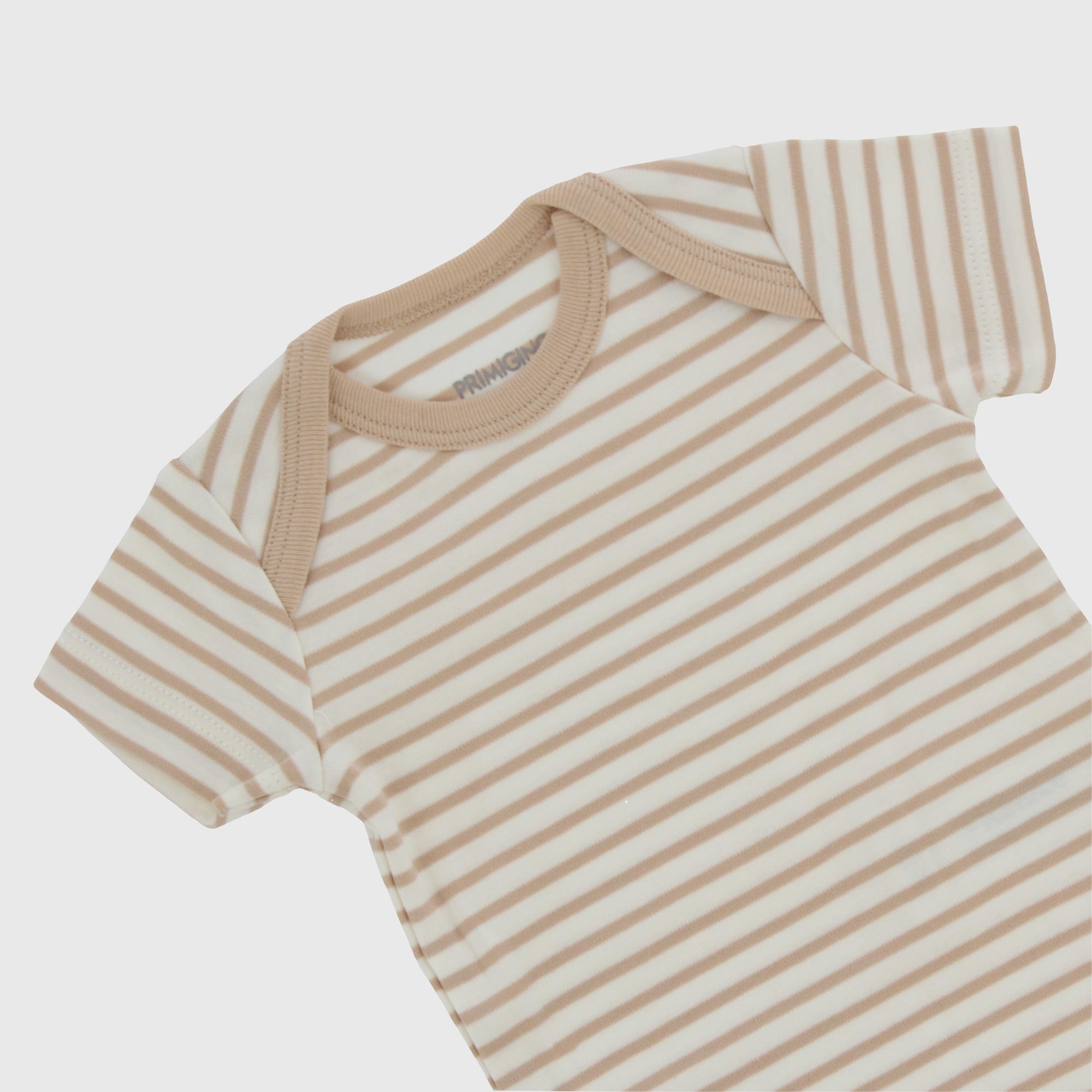 Body chaud en coton, col rond, manches courtes. Fermeture par bouton pression sur le bas. Rayures teintes en fil.