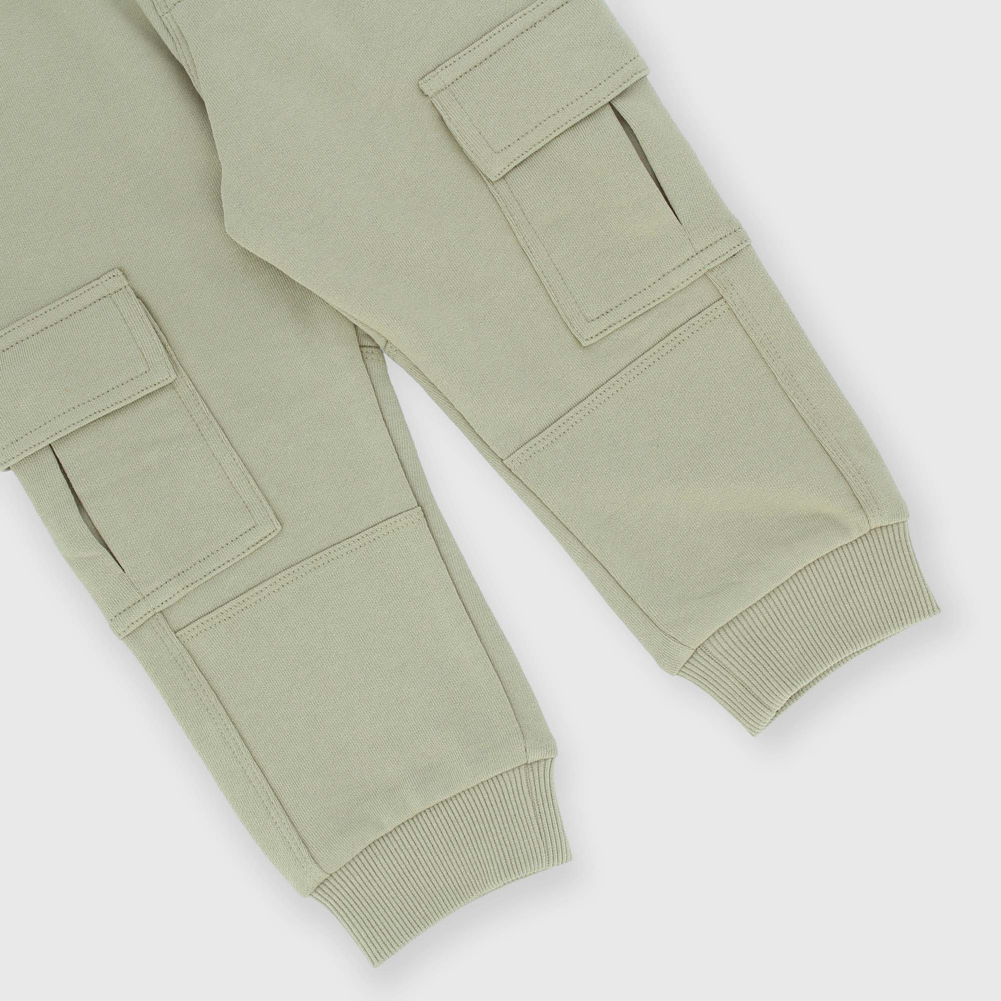 Pantalon en molleton avec taille élastique et lacets devant. Fermeture avec bouton automatique. Poches françaises et poches latérales avec rabat. Passant sur taille et bas côtelé.