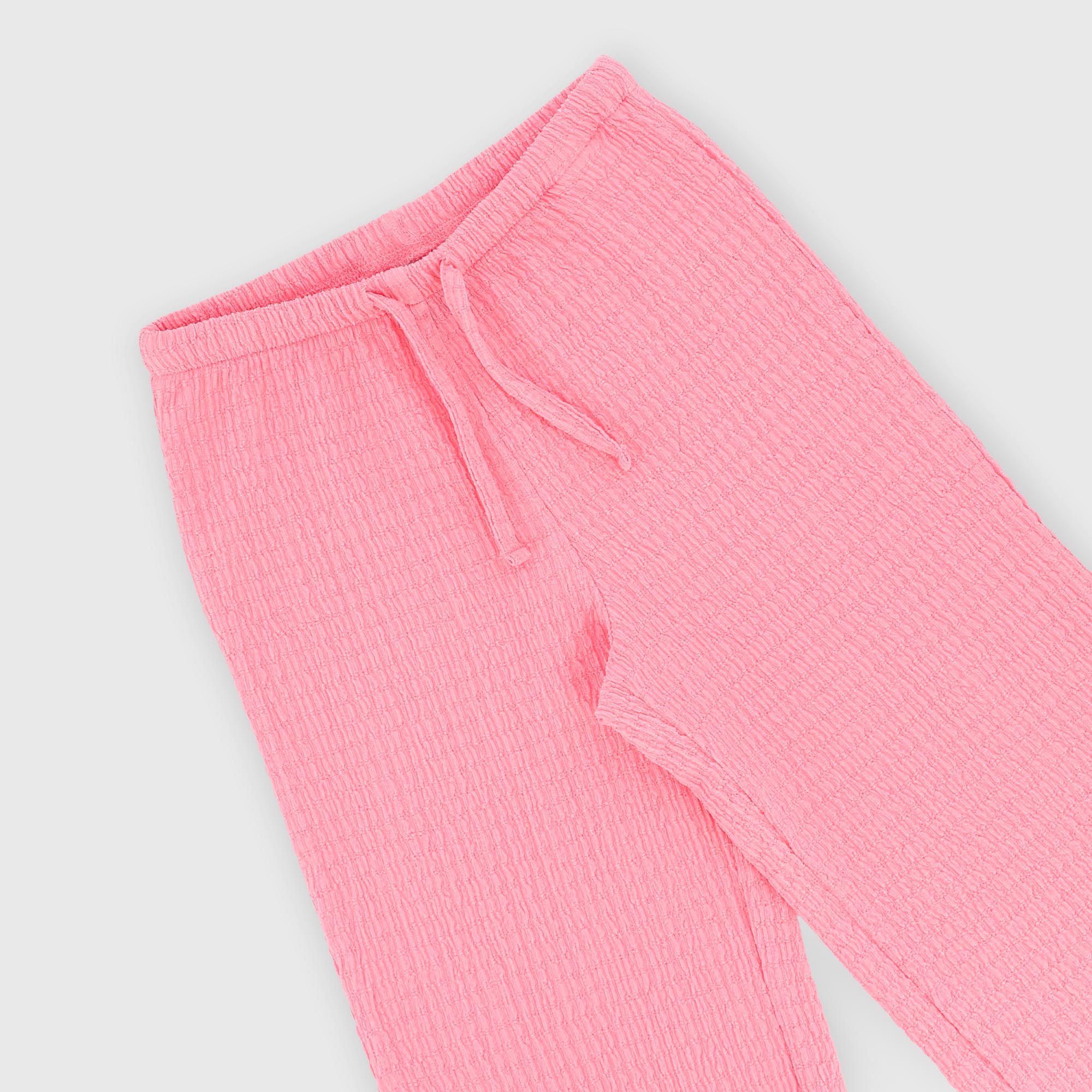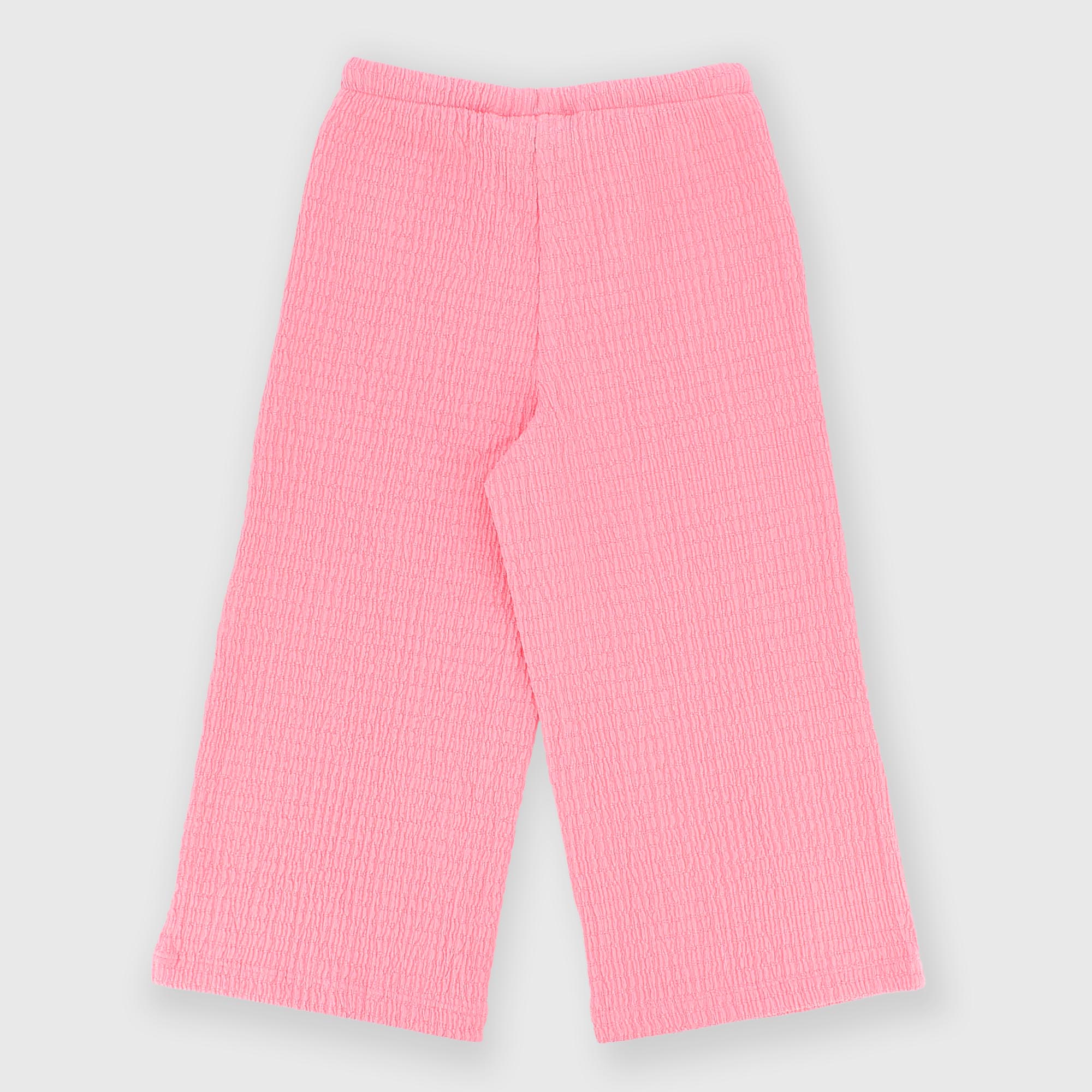 Pantalons wide leg en seersucker avec taille élastique et lacets devant.