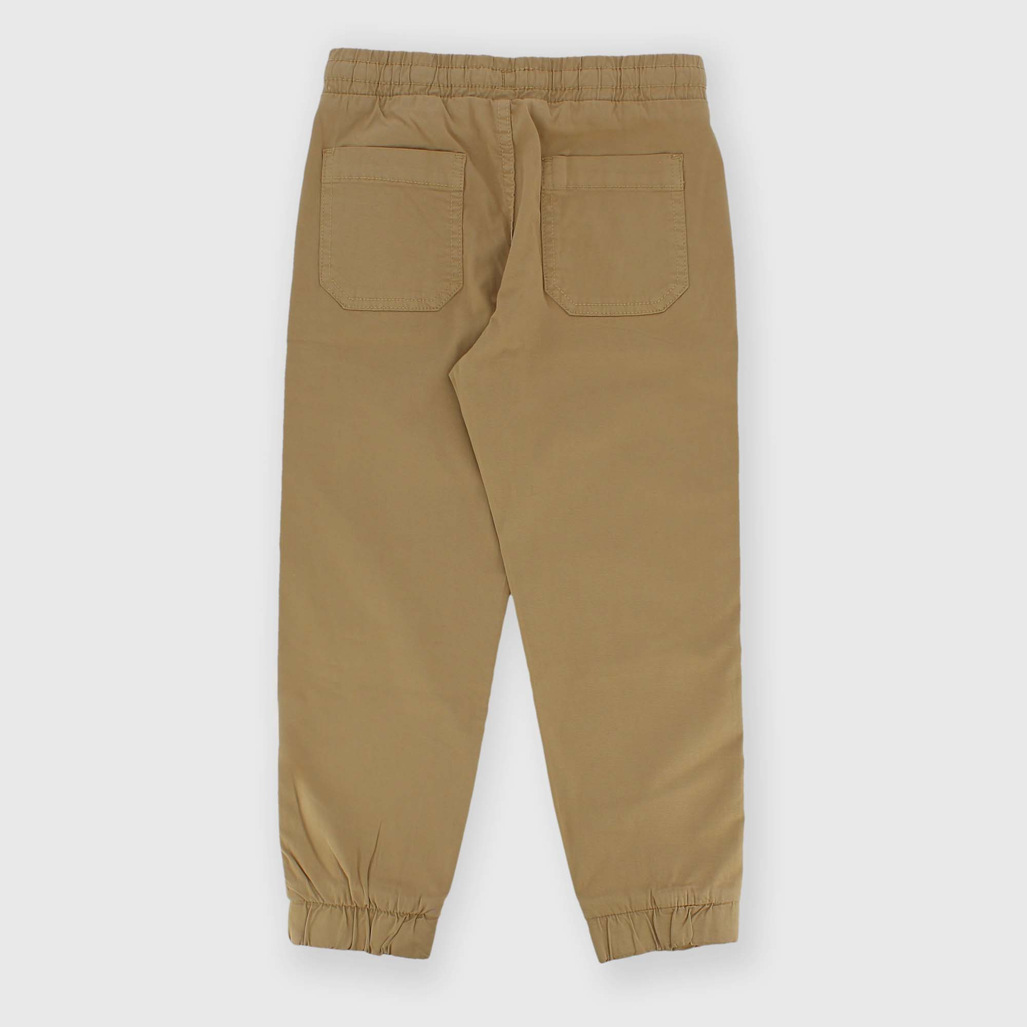 Pantalon en gabardine teint en pièce avec taille élastique et lacets devant. Poches françaises devant et appliquées derrière. Fond élastique.