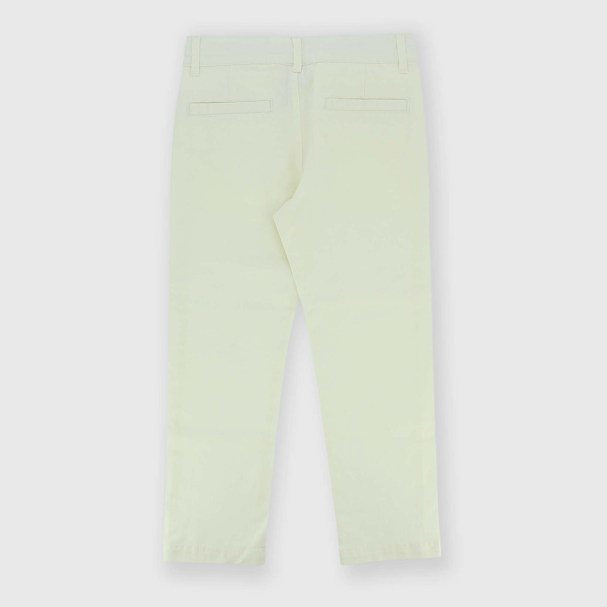 Pantalon en gabardine élastique avec taille réglable à l'intérieur. Fermeture avec bouton et zip. Poches françaises devant et à lisière derrière.