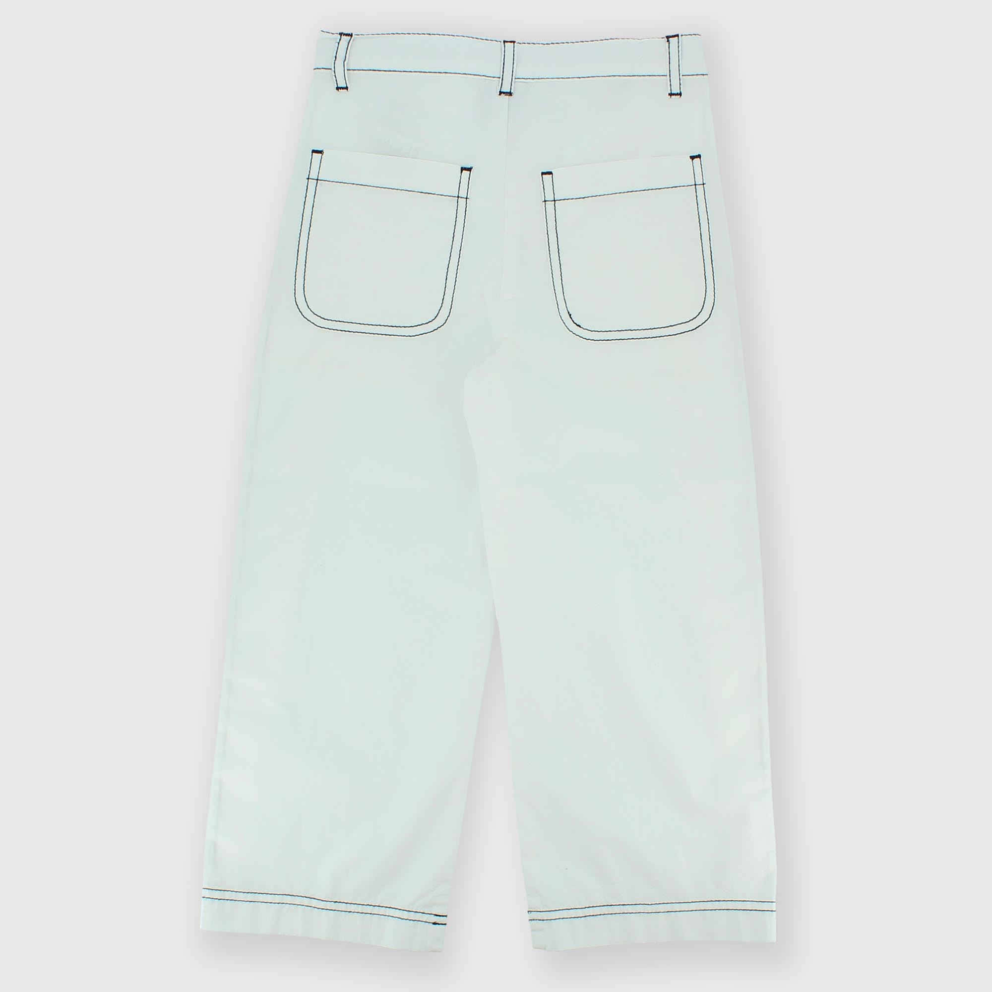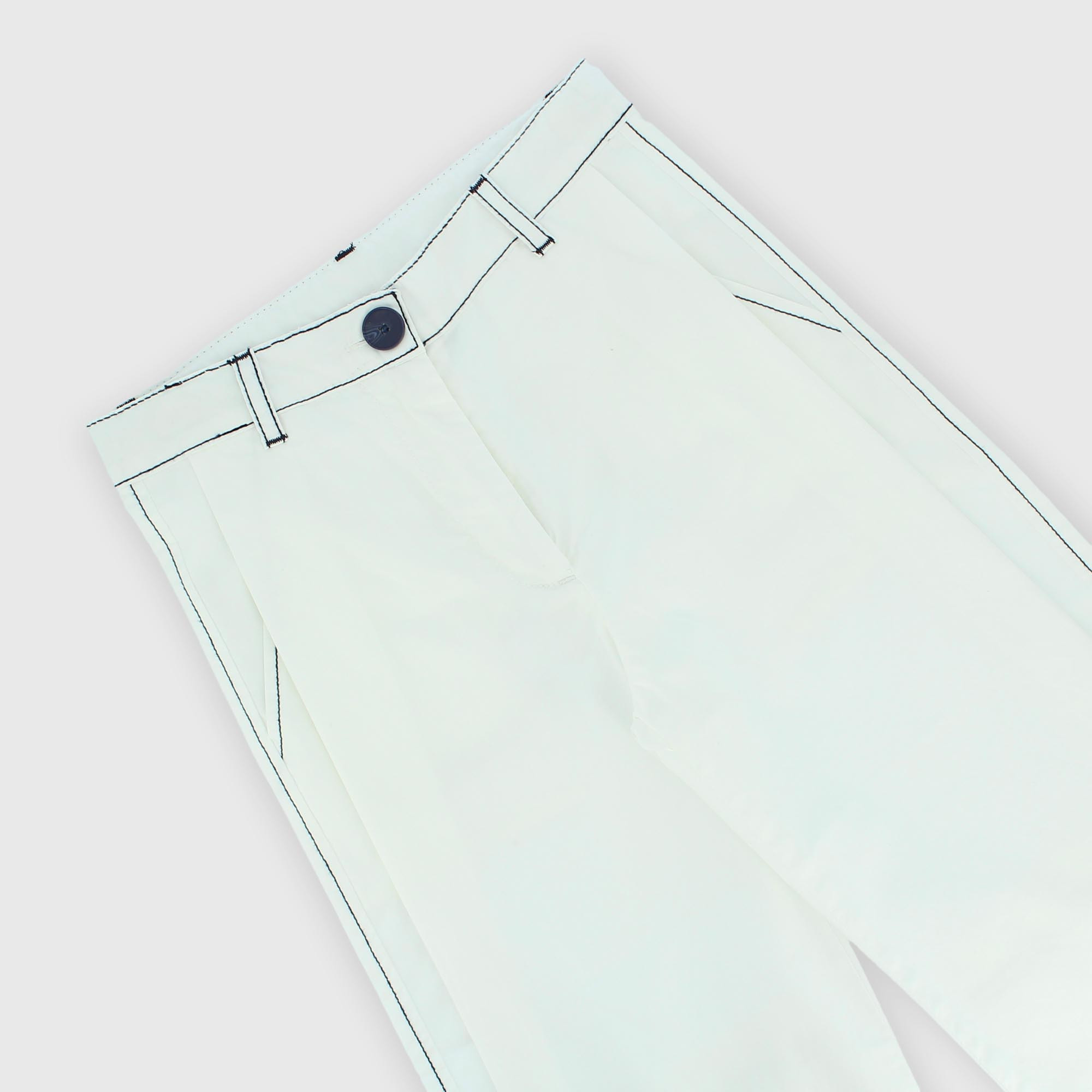 Pantalon wide leg en coton léger avec taille réglable à l'intérieur. Fermeture avec bouton et zip. Passants sur la taille. Poches françaises devant et appliquées derrière. Pinces devant. Coutures avec fil à contraste.
