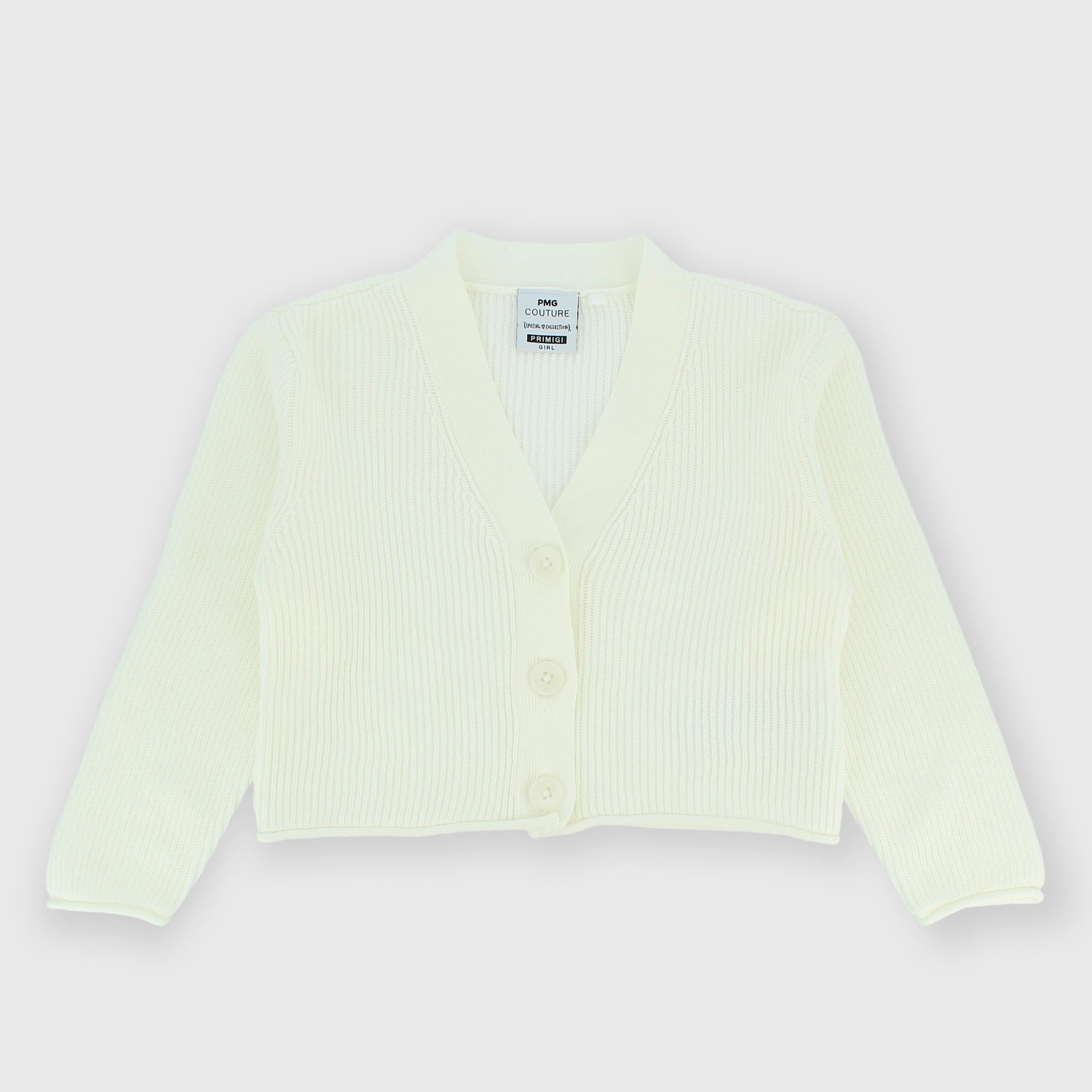 Cardigan en coton souple tricoté avec col-V. Fermeture avant avec boutons.