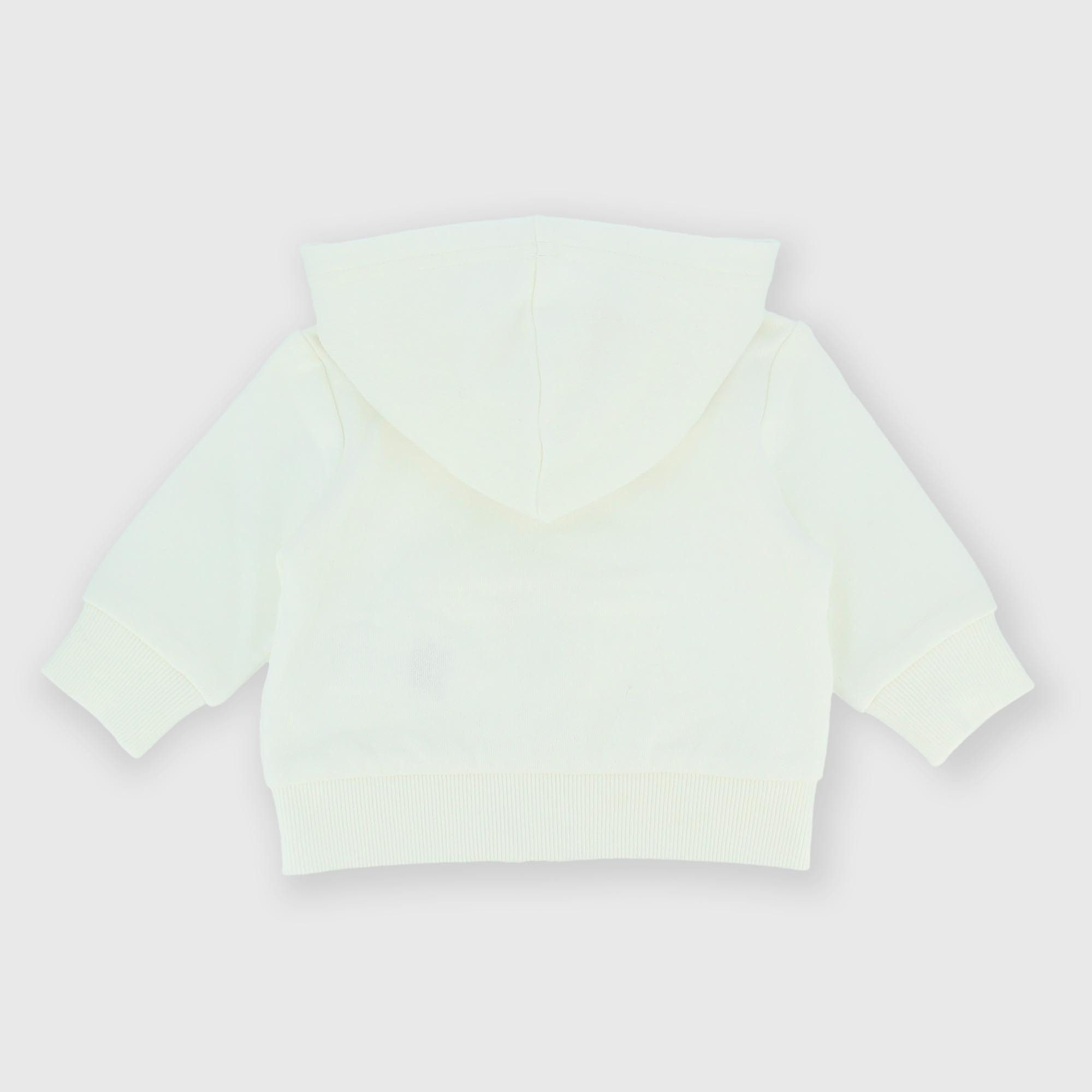 Sweat-shirt ouvert avec capuchon. Zip devant et poche appliquée. Poignets et bas côtelés.
