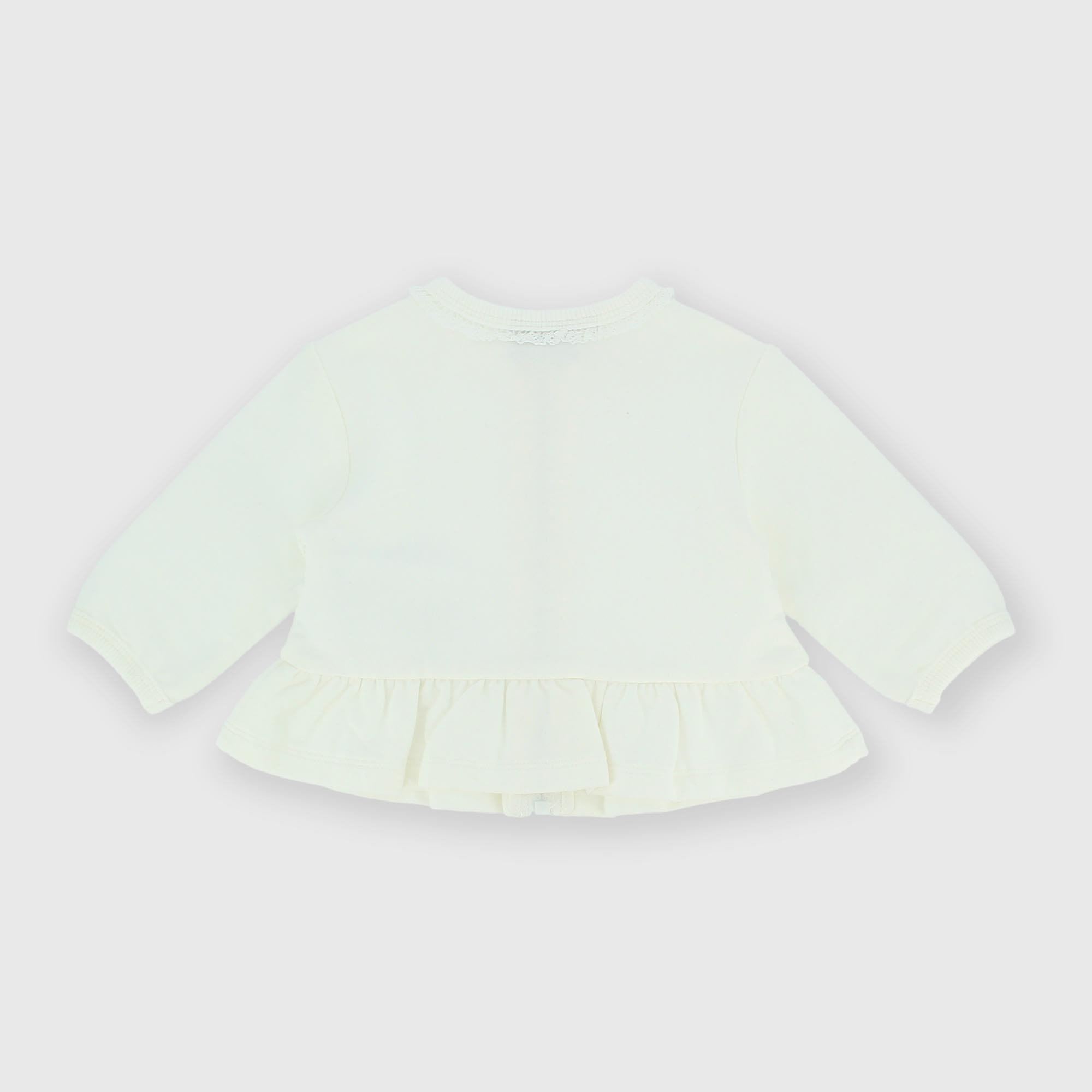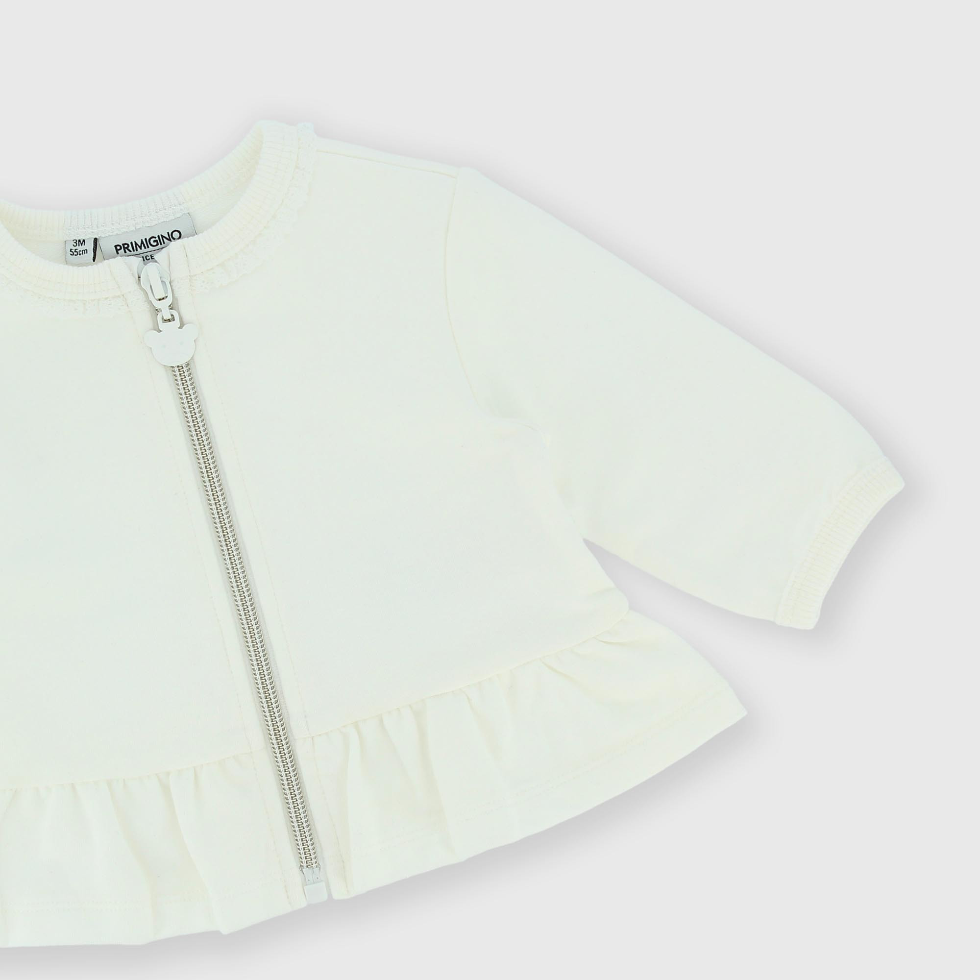 Sweat-shirt ouvert avec zip devant. Volant en bas.