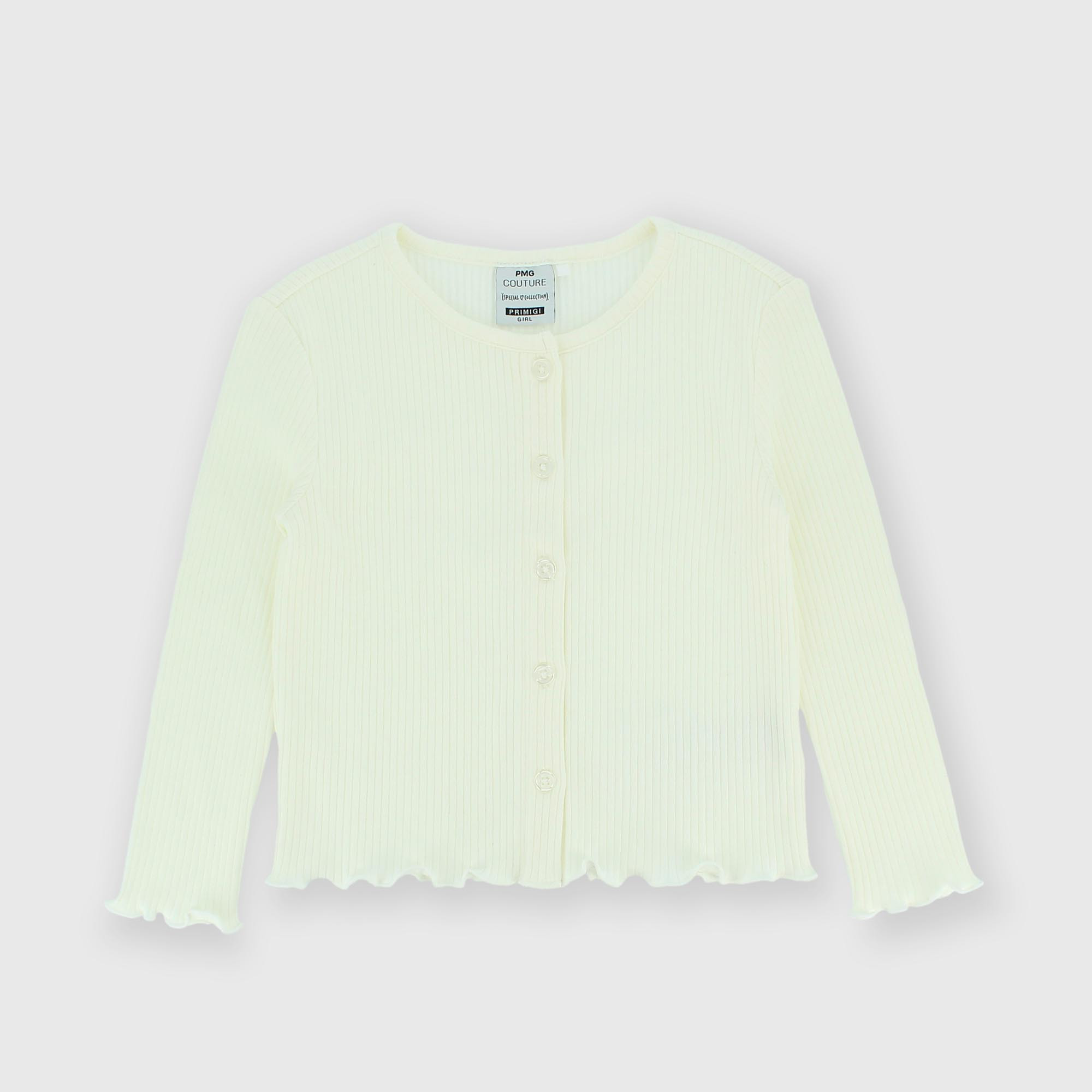 Cardigan côtelé, col rond. Fermeture avec boutons devant.