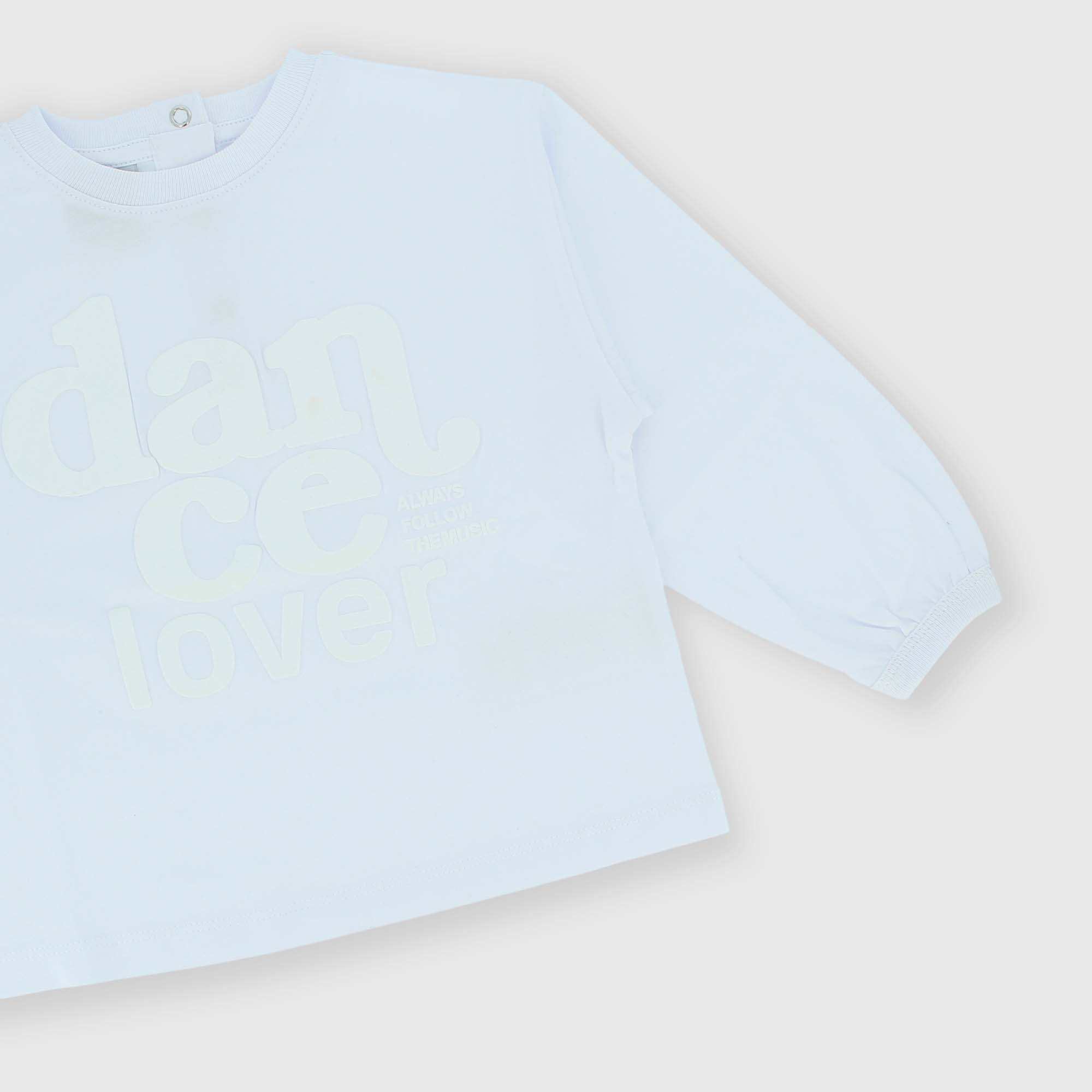 Pull en Jersey, raz de cou avec manches longues. Fermeture avec boutons pression derrière. Imprimé devant avec lettrage effet caoutchouc.
