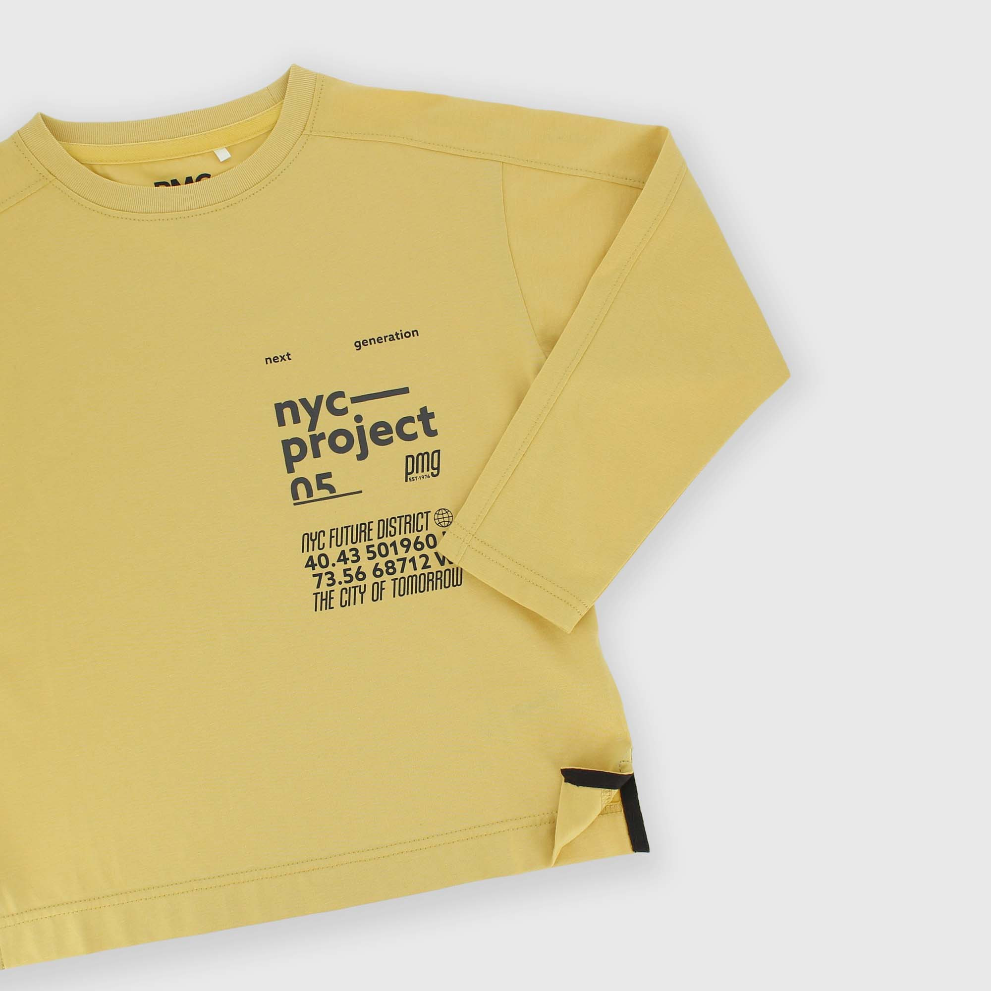 Pull en Jersey, raz de cou, manches longues. Imprimé avec lettrage et détails en caoutchouc devant. Fentes latérales en bas.