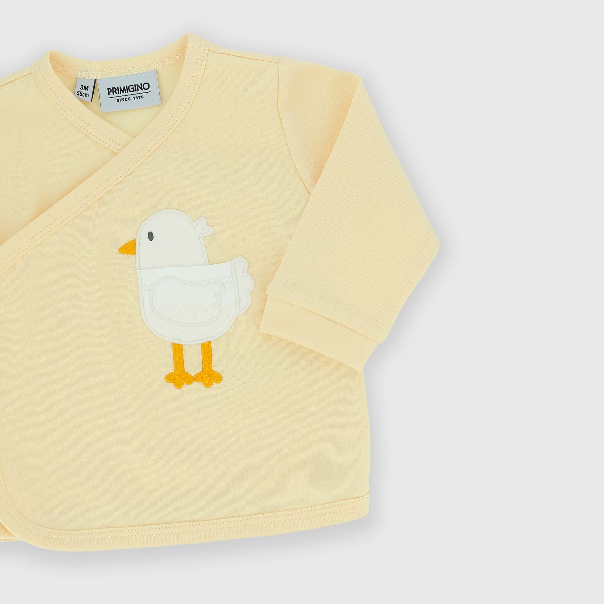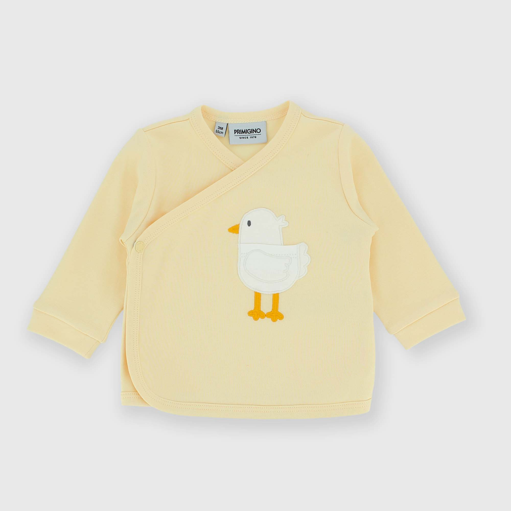 Chauffe-coeur en Interlock à manches longues. Fermeture kimono. Canard imprimé devant.