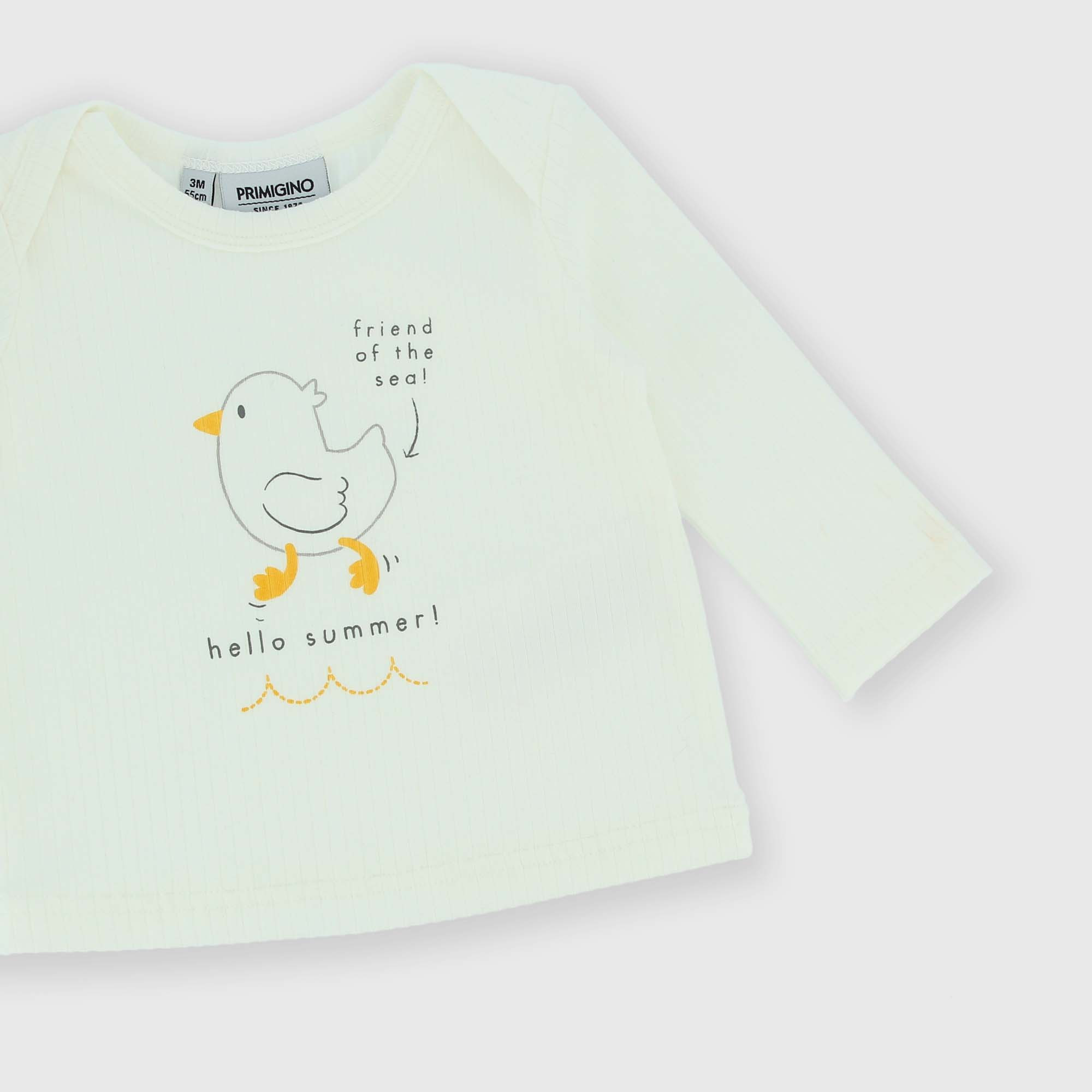 Pull côtelé, raz de cou, manches longues. Canard imprimé devant.