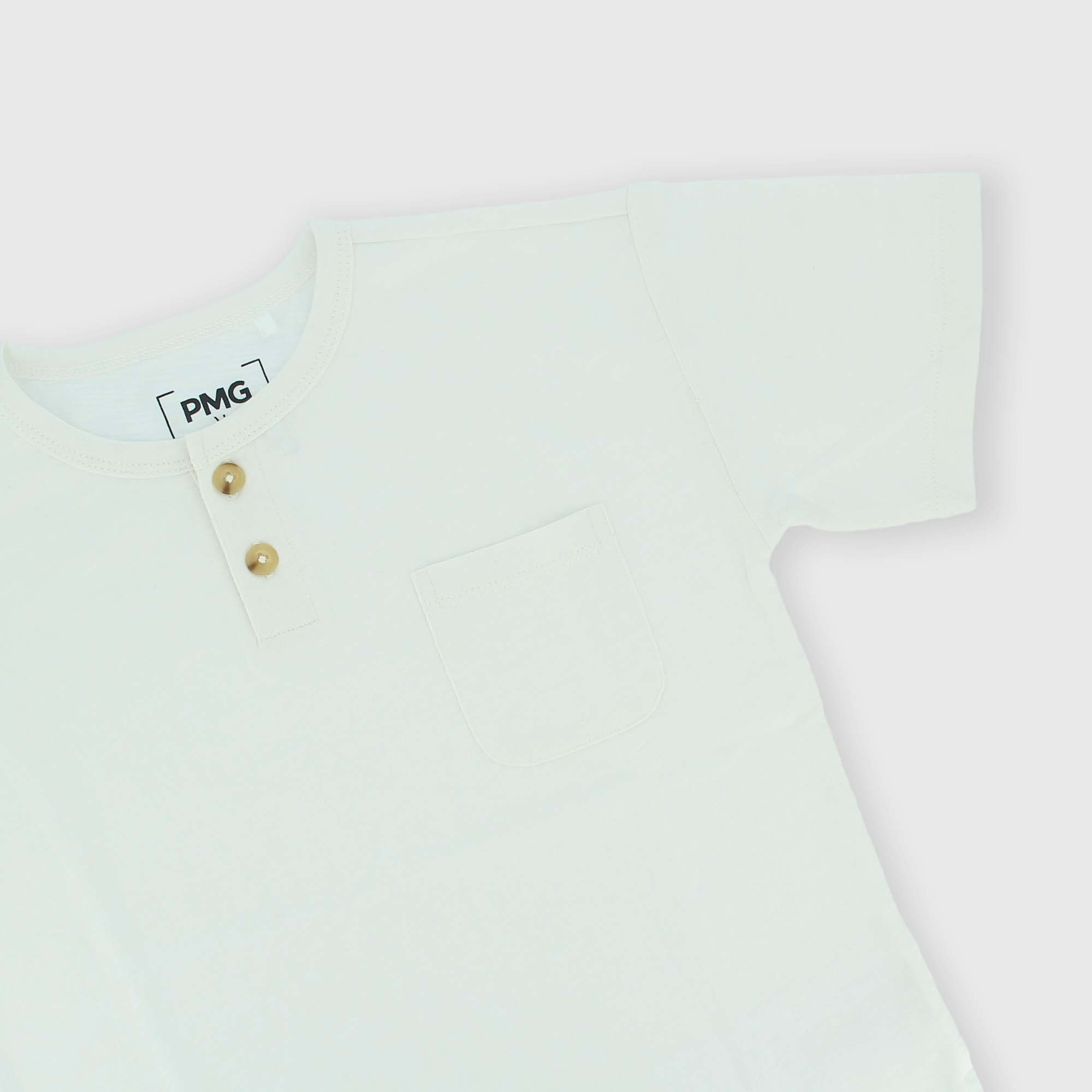 T-shirt demi-col en Jersey flammé, col-rond, manches courtes. Boutons sur l'encolure. Poche sur la poitrine et fentes latérales en bas.