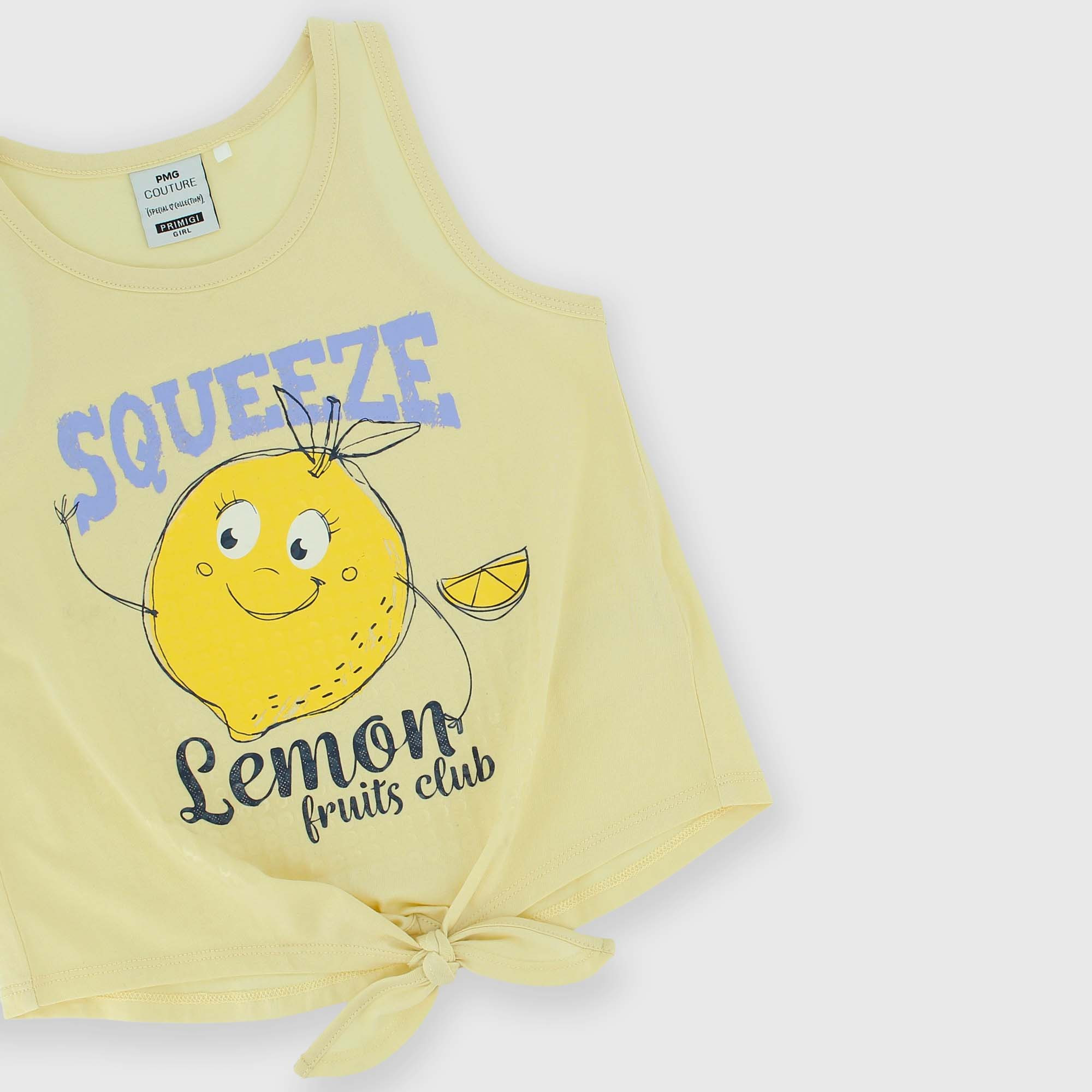 Débardeur en Jersey, raz de cou. Imprimé effet paillettes devant. Noeud en bas.