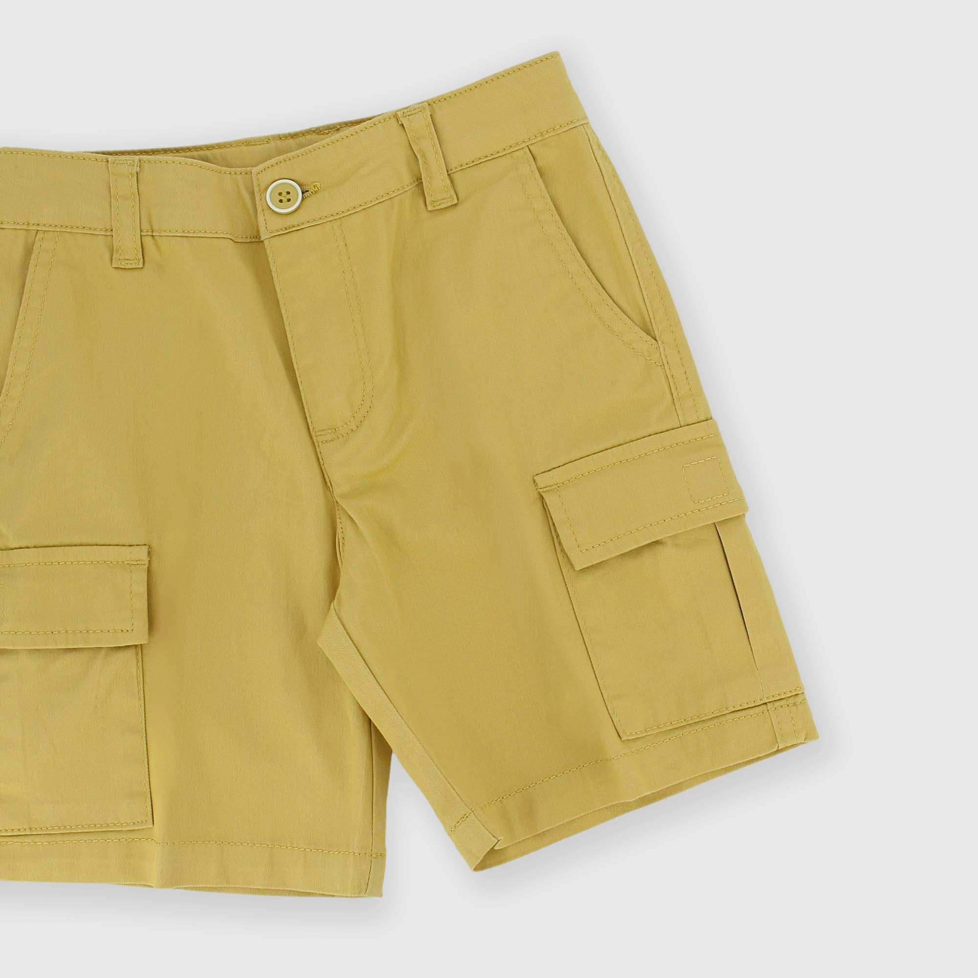 Bermudas en gabardine élastique avec taille réglable à l'intérieur. Fermeture avec bouton et zip. Poches françaises devant, appliquées avec rabat sur le côté et à lisière avec rabat derrière.