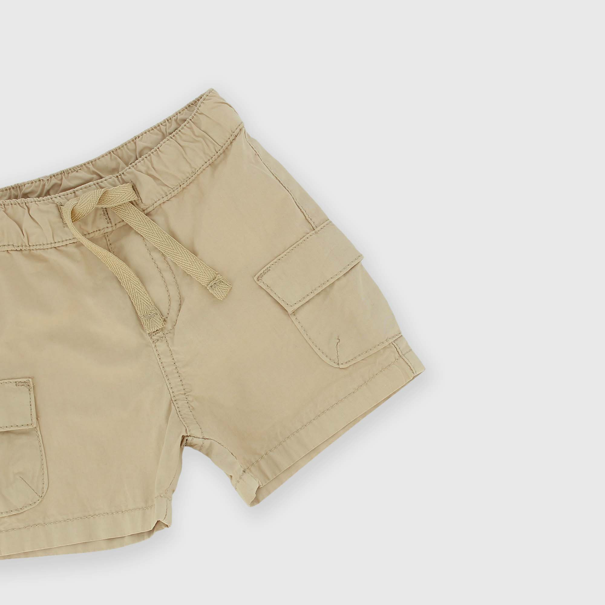 Pantalon en popeline avec taille élastique et lacets devant. Poche appliquée avec rabat sur les côtés.