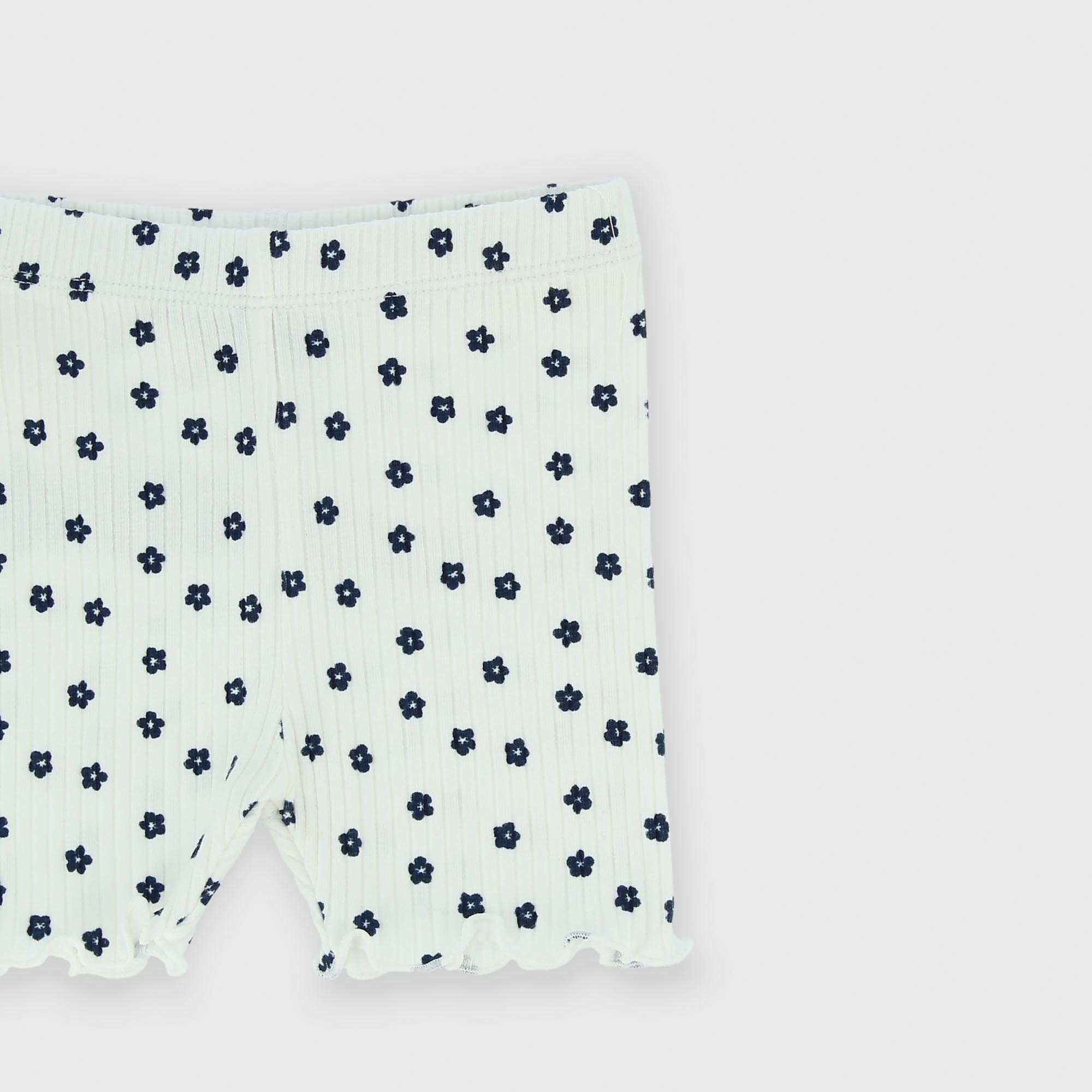 Pantalon cycliste côtelé avec taille élastique. Imprimé fleurs all-over.