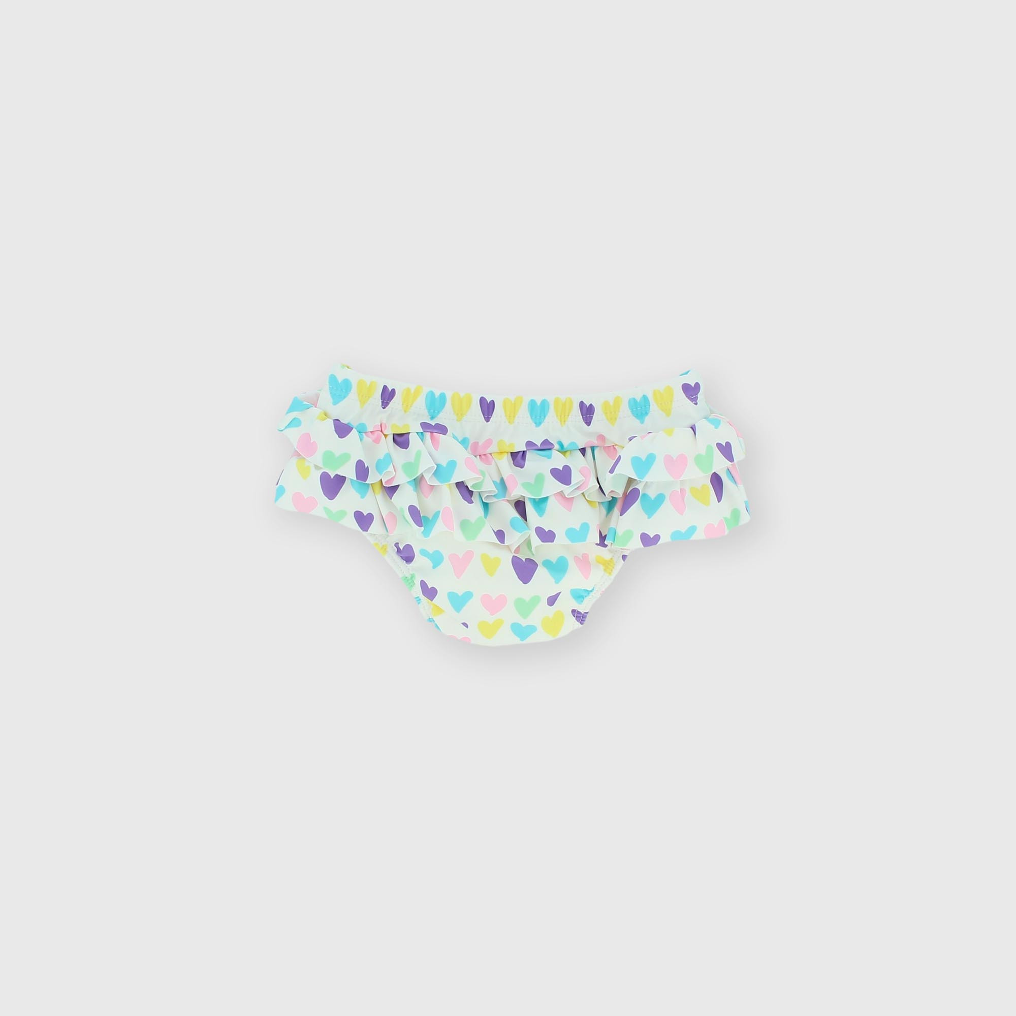 Costume de couche avec taille élastique. Volants appliqués. Motif coeurs.