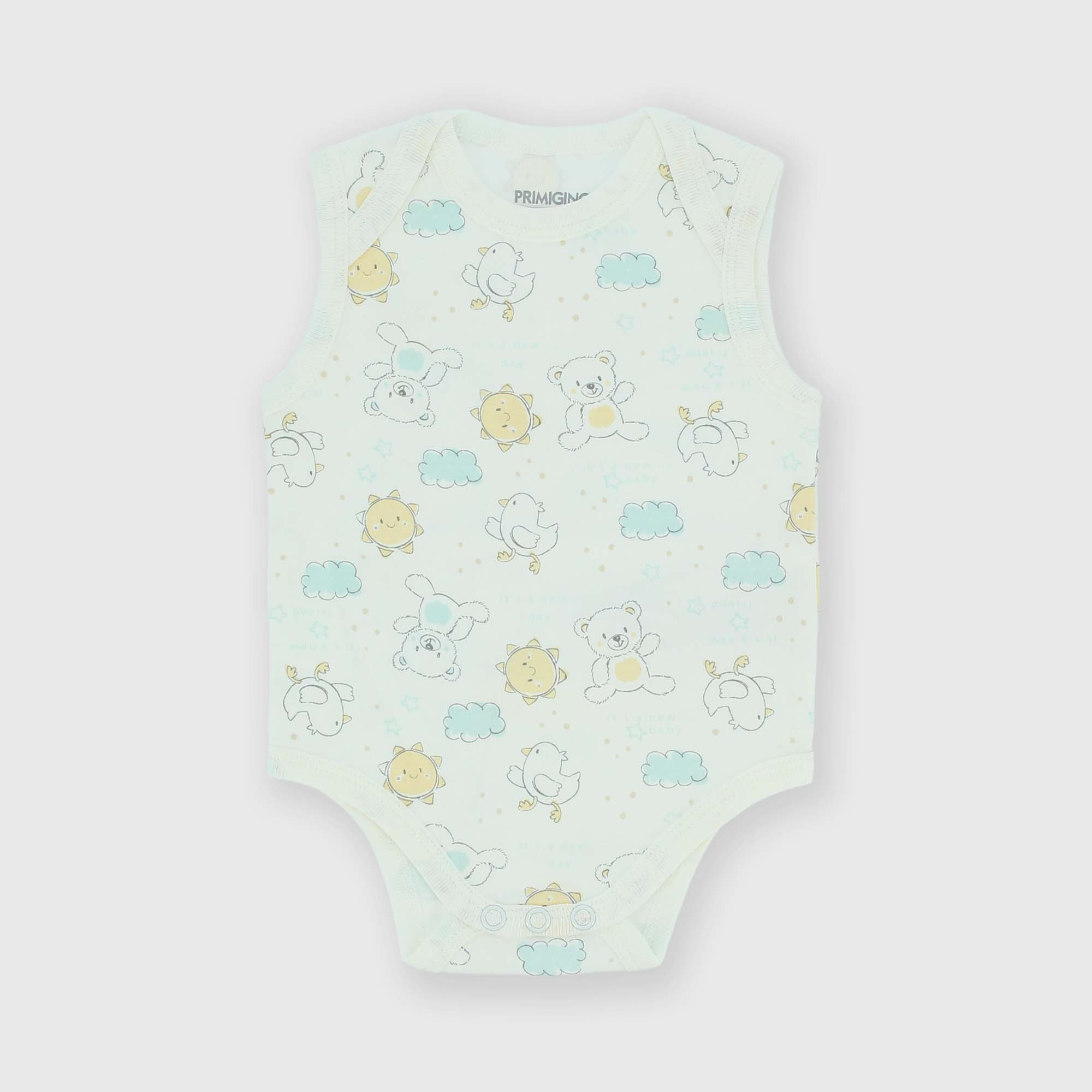 Body en Interlock, raz de cou, emmanchure. Fermeture avec boutons pression en bas. Imprimé all-over.