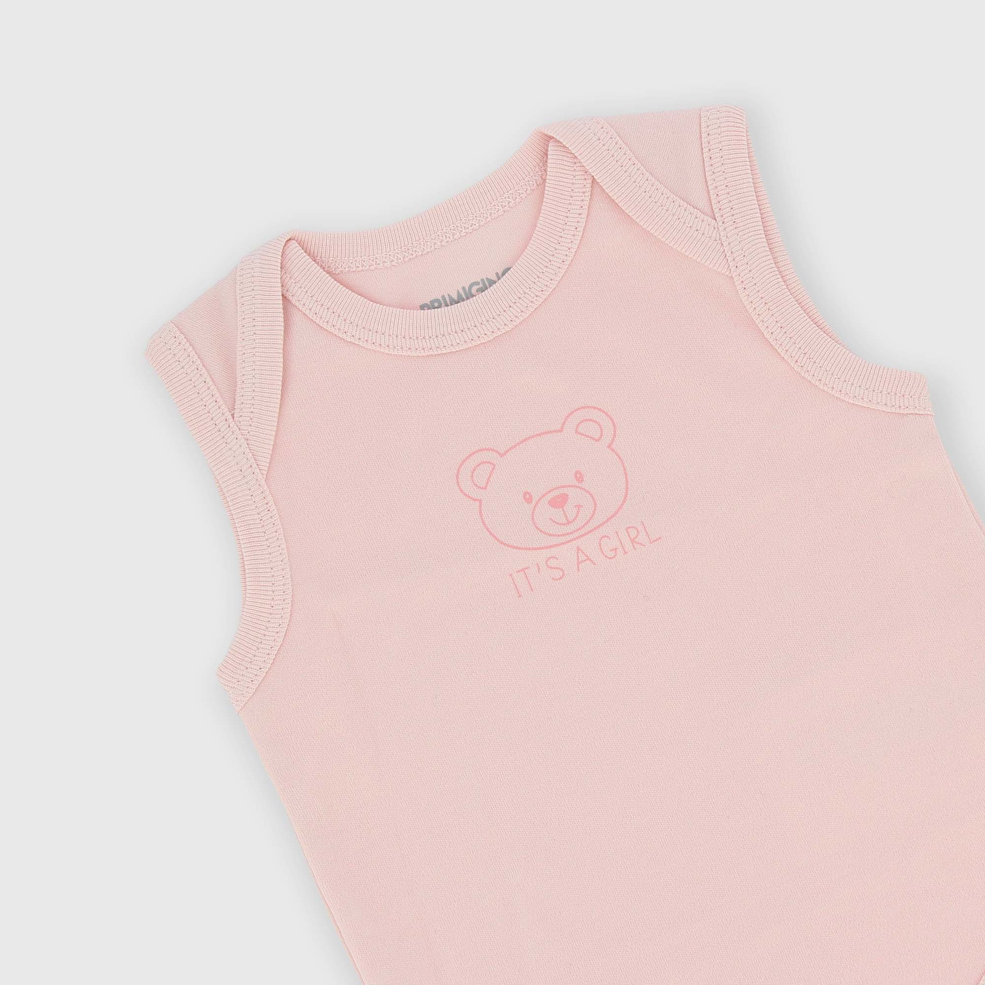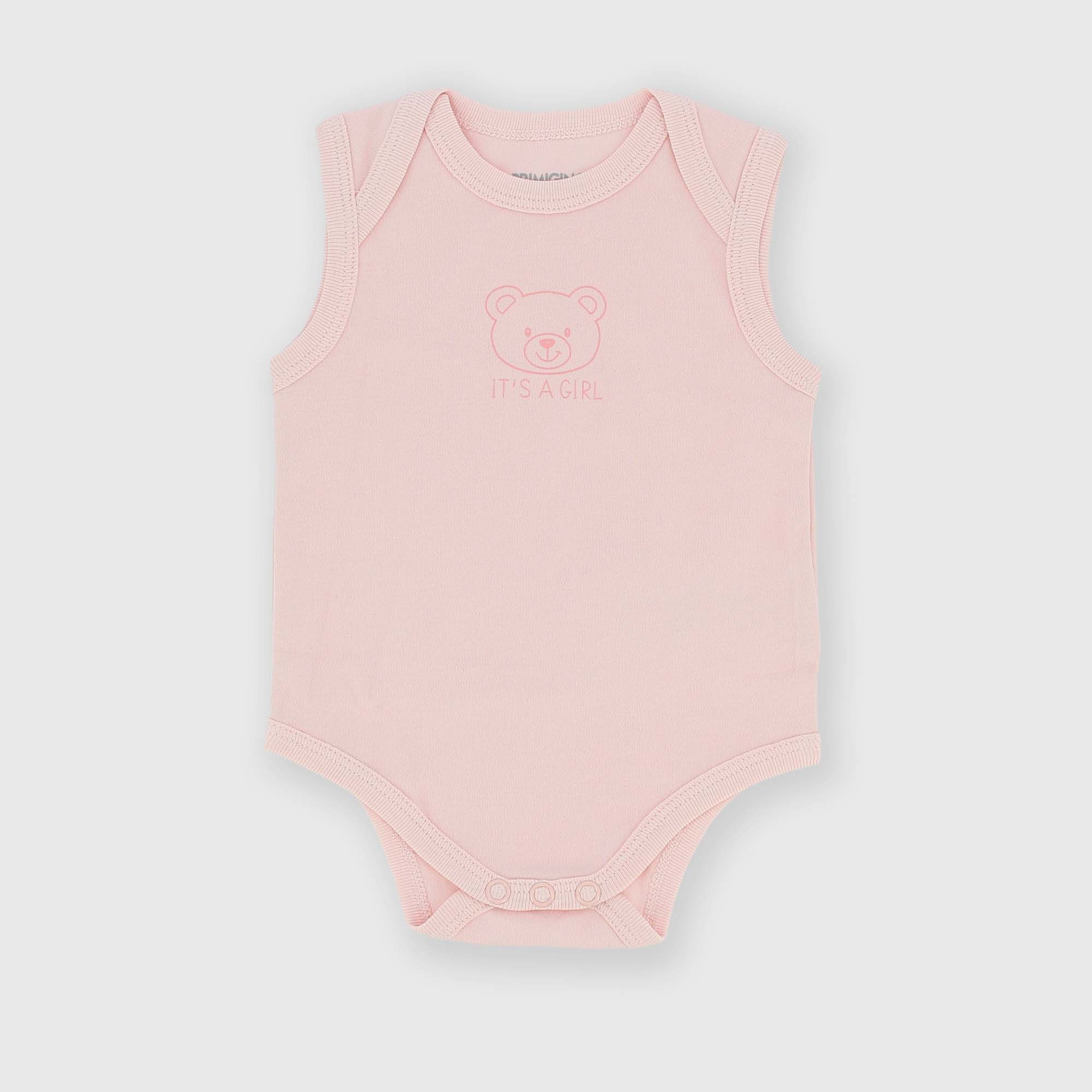 Body en Interlock, raz de cou, emmanchure. Fermeture avec boutons pression en bas. Ours imprimé devant.