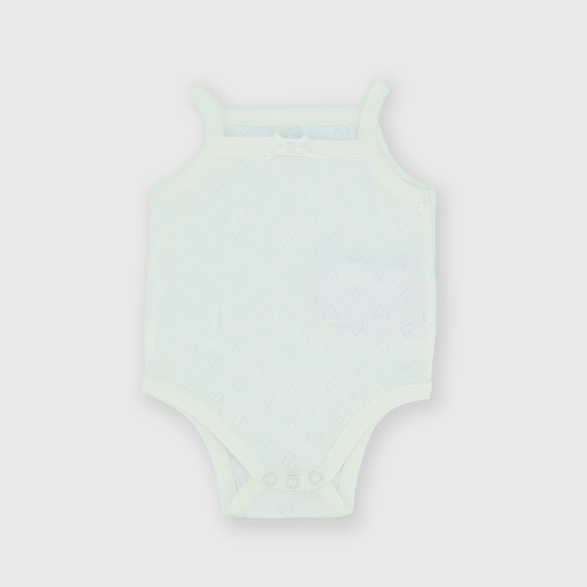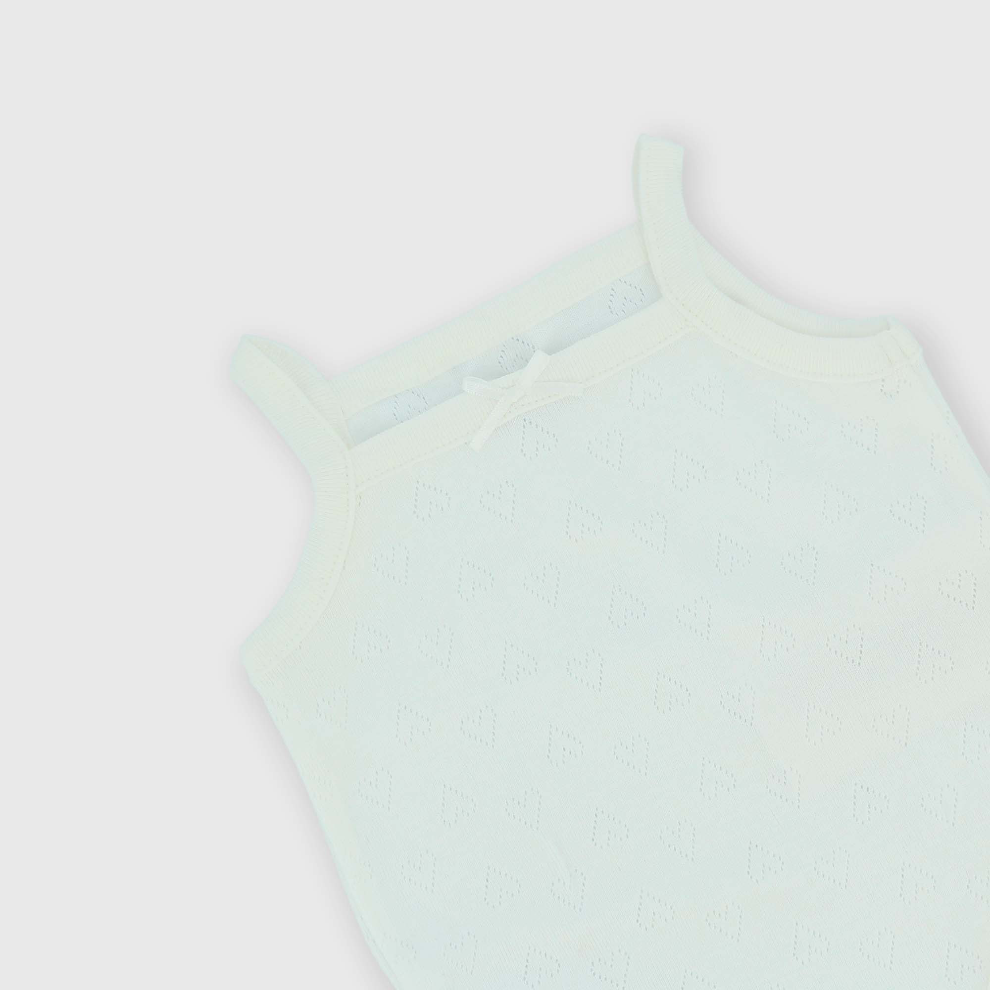 Body côtelé, raz de cou, encolure carrée, avec bretelles. Fermeture avec boutons pression en bas. Noeud appliqué devant.